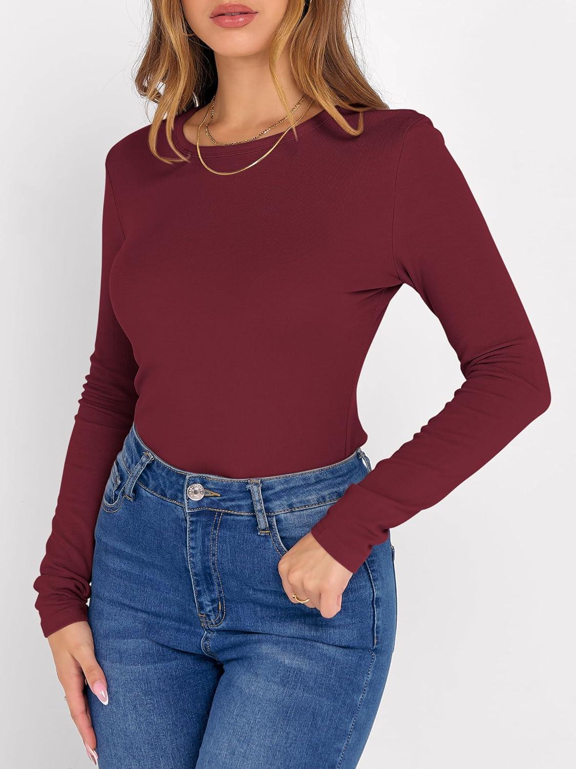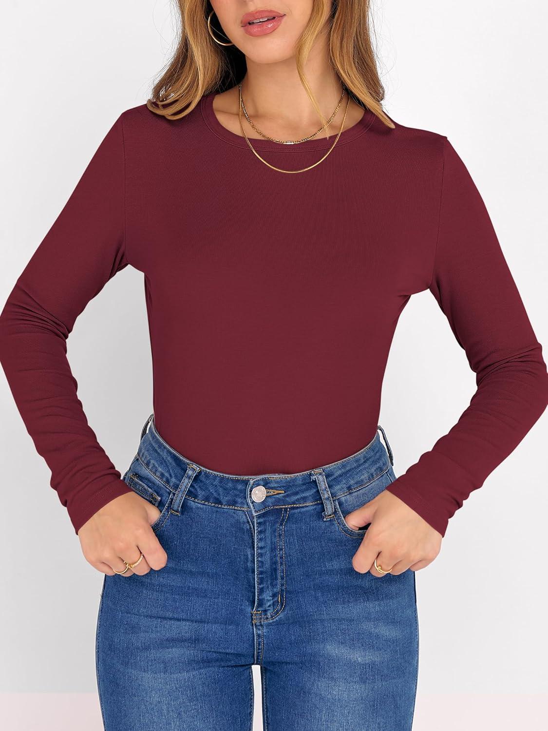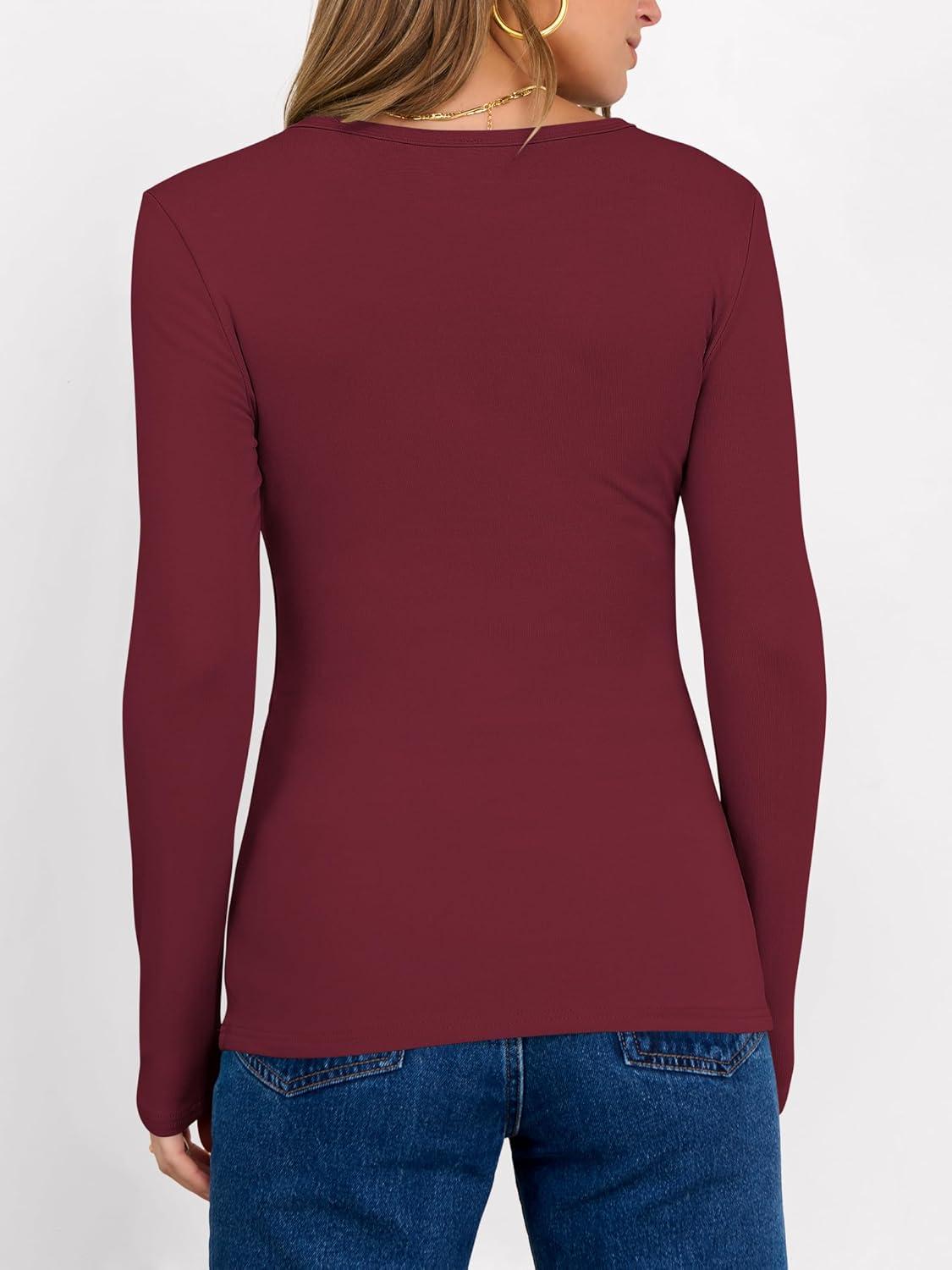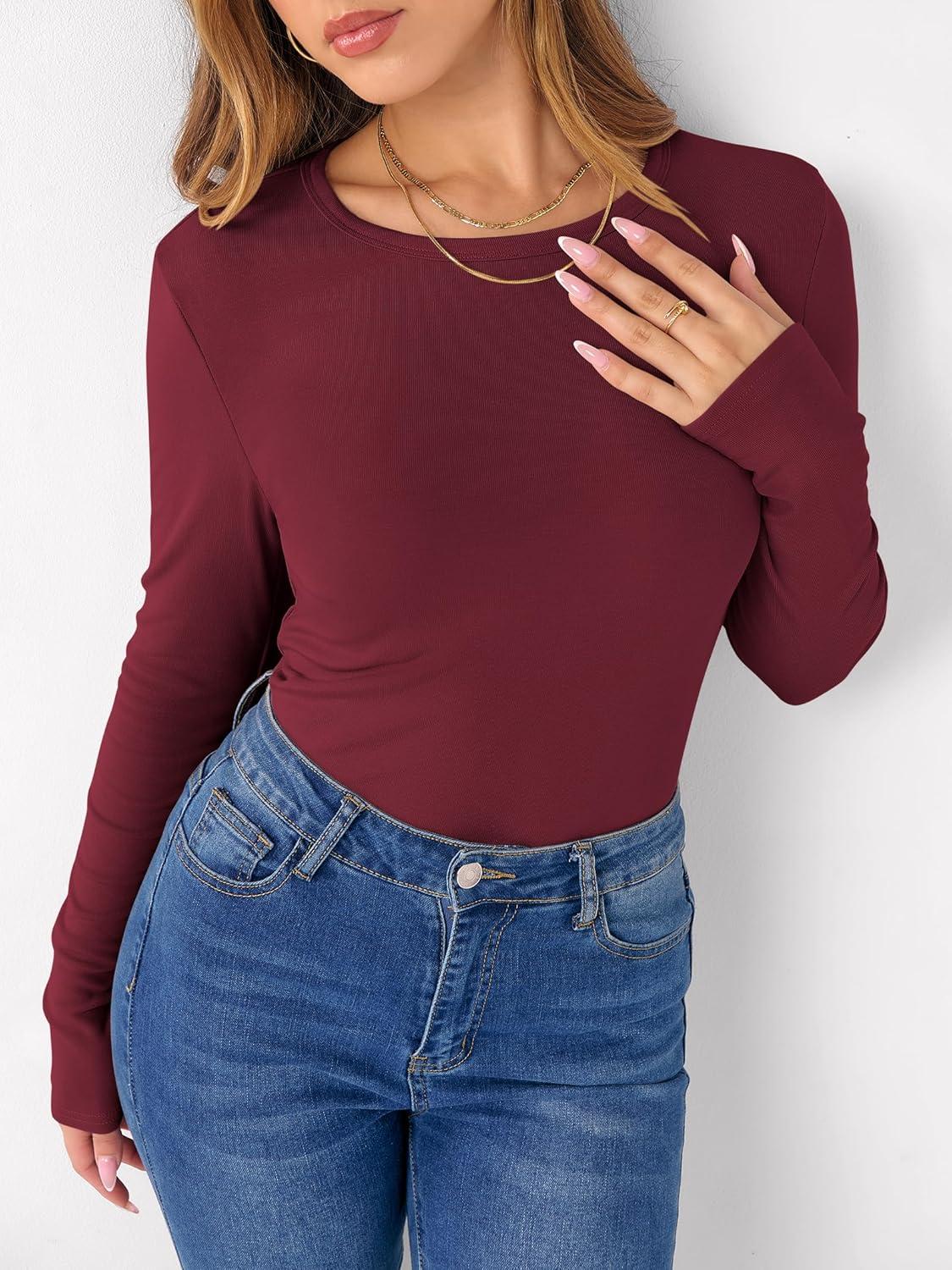 ANRABESS Women Long Sleeve Thermal Shirt Fleece Tops 2026 Fall Winter Crew Neck Casual Base Layer T-Shirts Warm Undershirts(Dark Red)