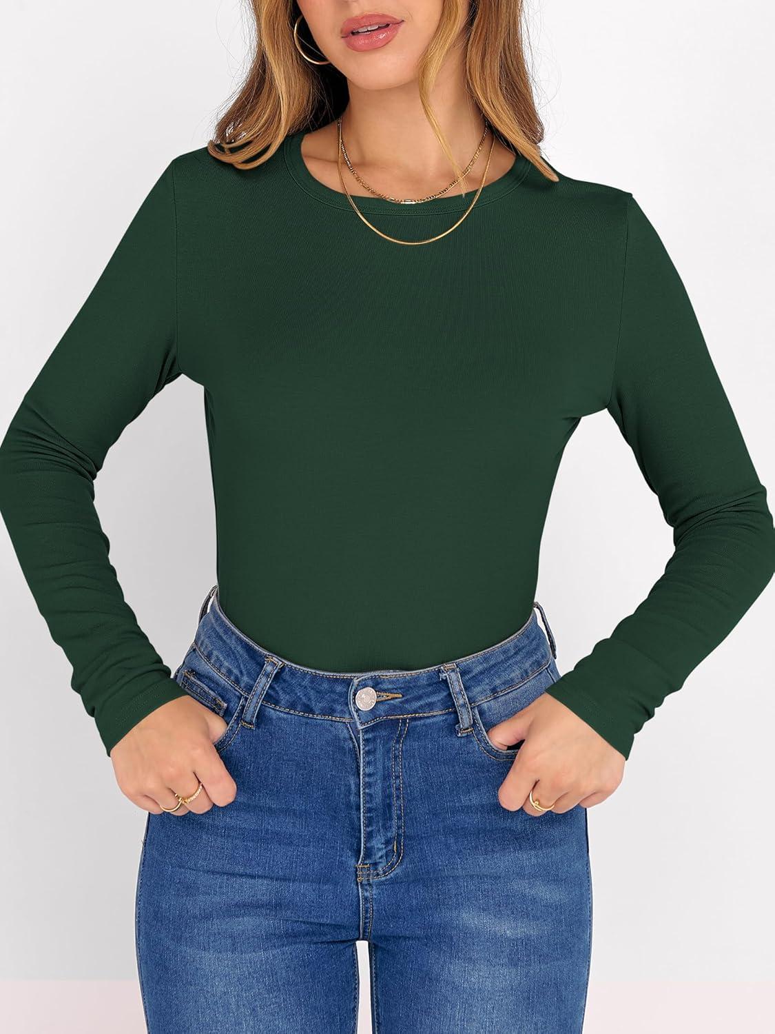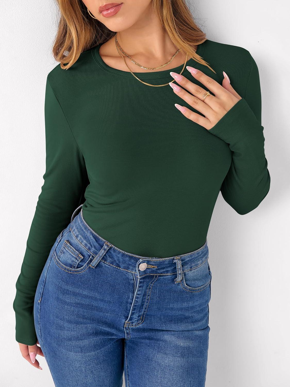ANRABESS Women Long Sleeve Thermal Shirt Fleece Tops 2026 Fall Winter Crew Neck Casual Base Layer T-Shirts Warm Undershirts(Forest Green)