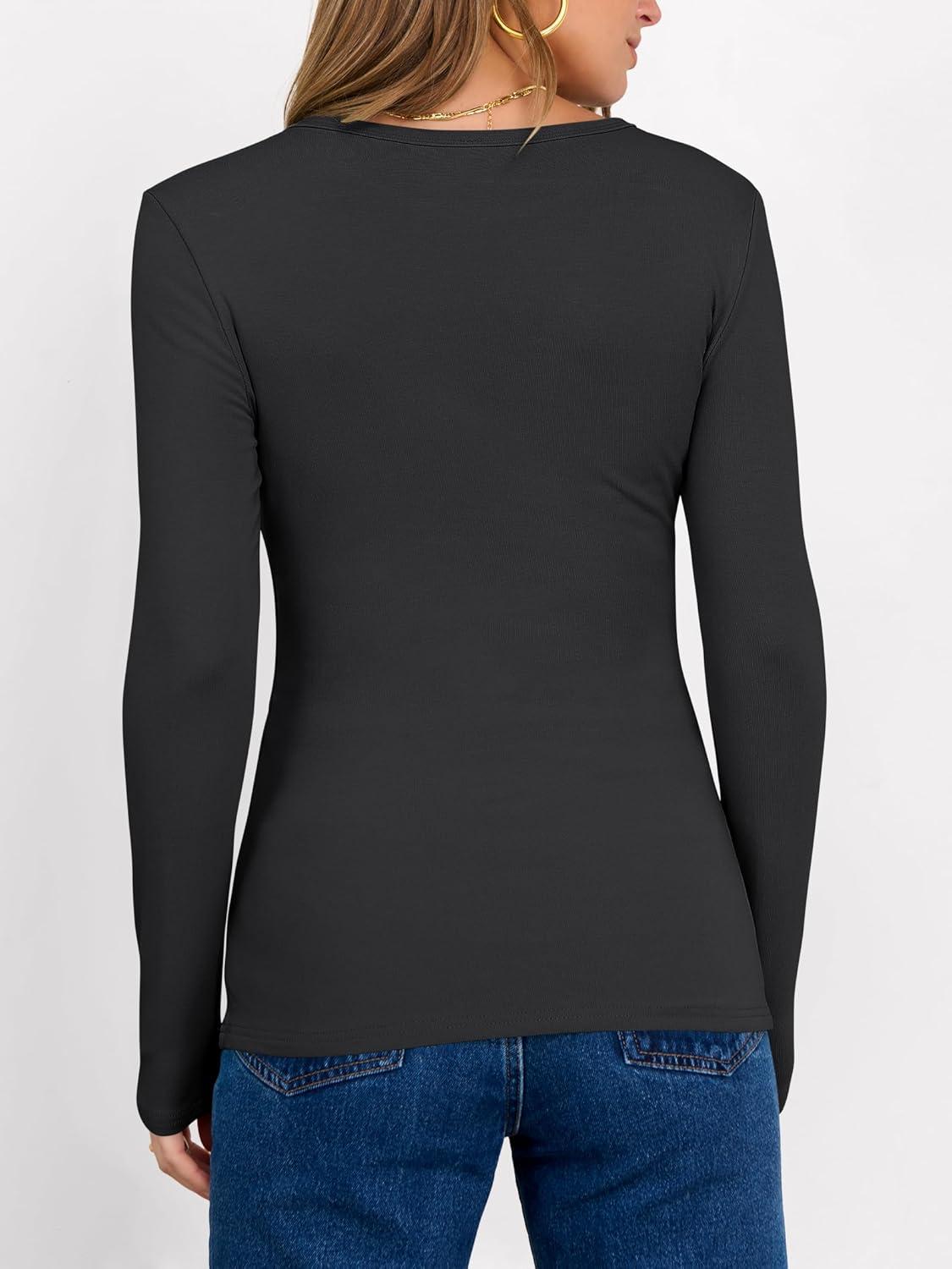 ANRABESS Women Long Sleeve Thermal Shirt Fleece Tops 2026 Fall Winter Crew Neck Casual Base Layer T-Shirts Warm Undershirts(Grayish Black)