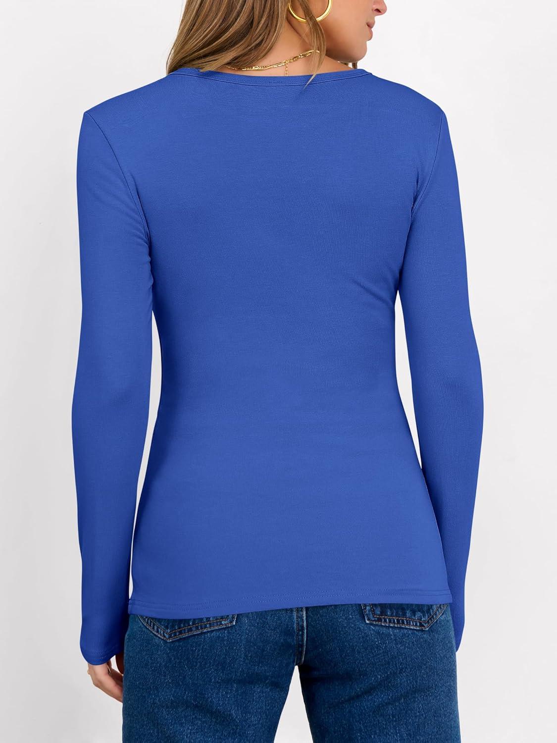 ANRABESS Women Long Sleeve Thermal Shirt Fleece Tops 2026 Fall Winter Crew Neck Casual Base Layer T-Shirts Warm Undershirts(Royal Blue)