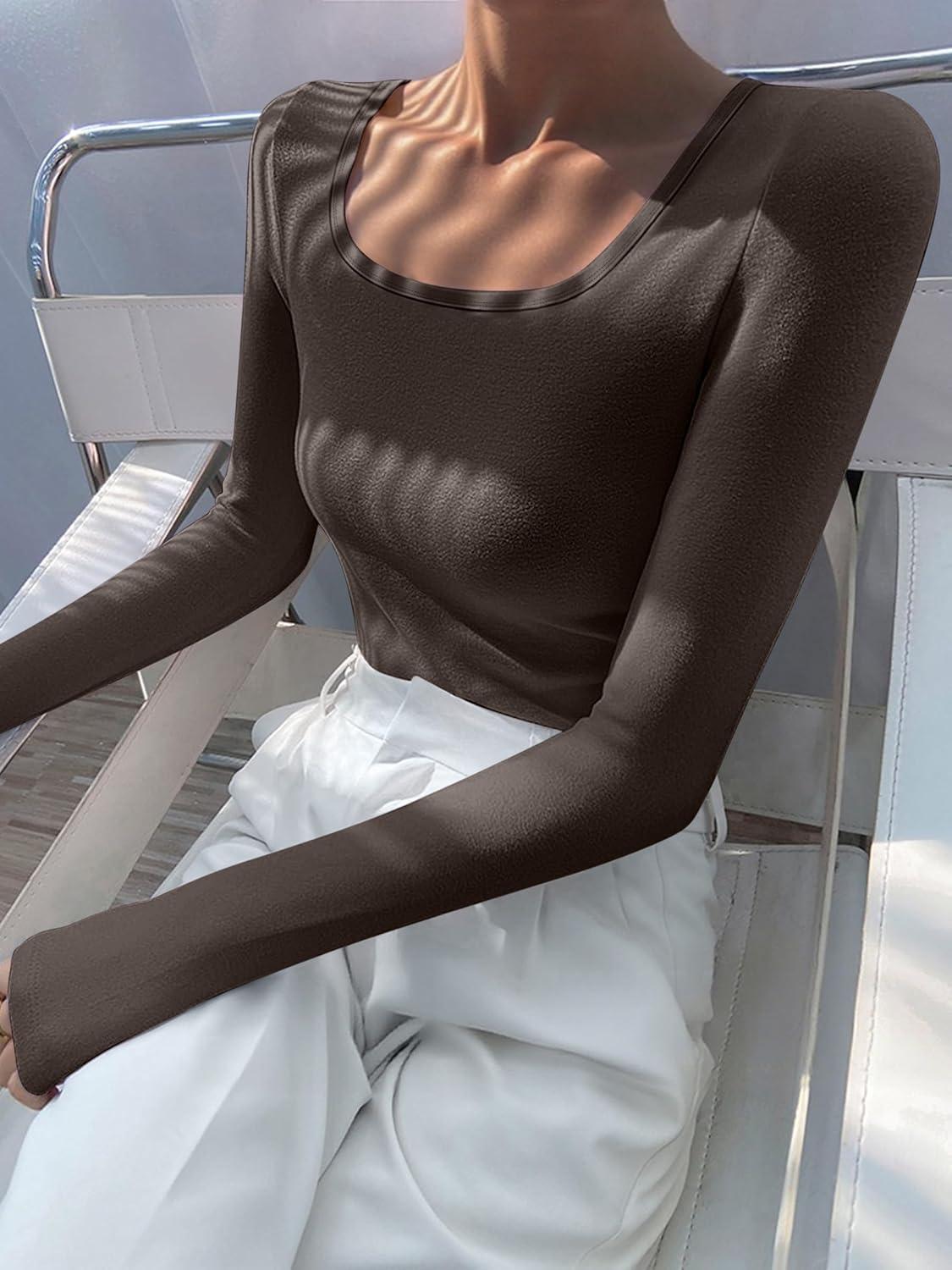 ANRABESS Women Long Sleeve Thermal Top Scoop Neck Slim Fit Fleece Shirts Basic Tee Casual 2025 Fall Winter Warm Undershirts(Brown)