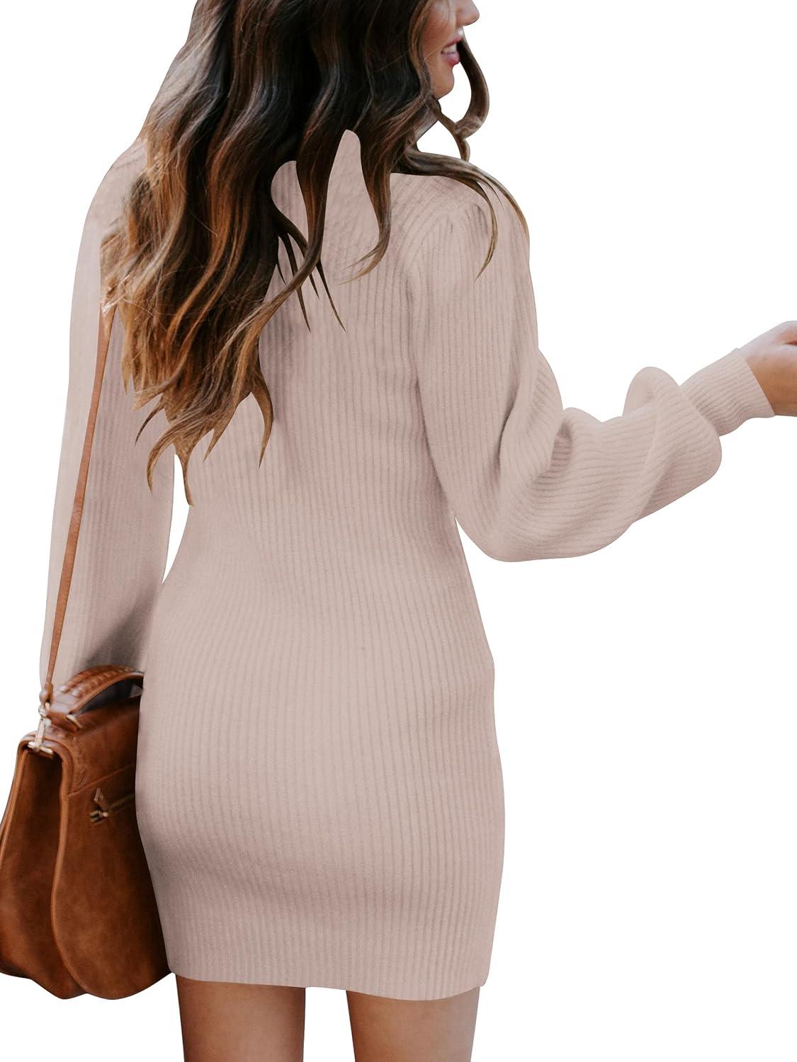 imageANRABESS Women Long Sleeve Turtle Mock Neck Rib Knit Stretch Slim Fitted Bodycon Sweater Mini Short Dress 2025 Fall OutfitsPink
