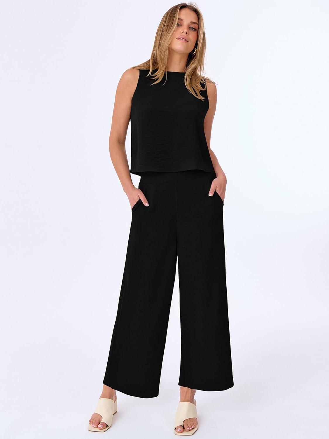 imageANRABESS Women Lounge Sets 2 Piece Outfits Summer Sleeveless Crop Tops Capri Wide Leg Pants Vacation Beach Travel SetsBlack