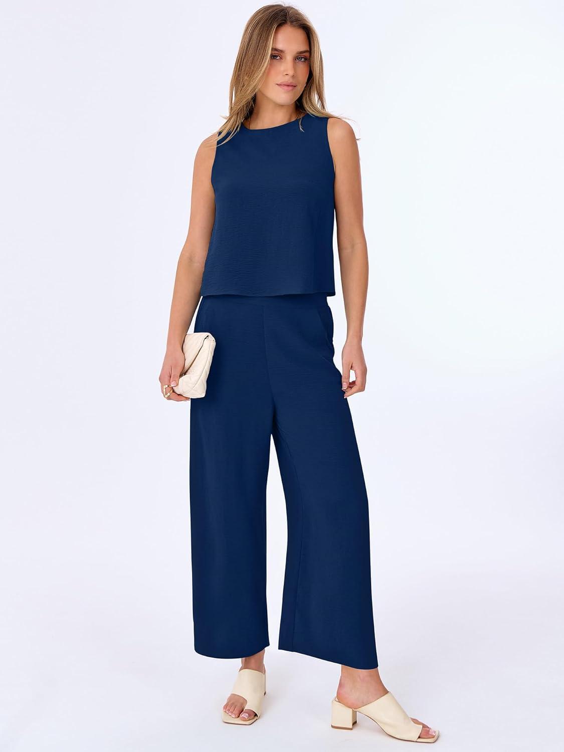 imageANRABESS Women Lounge Sets 2 Piece Outfits Summer Sleeveless Crop Tops Capri Wide Leg Pants Vacation Beach Travel SetsNavy Blue