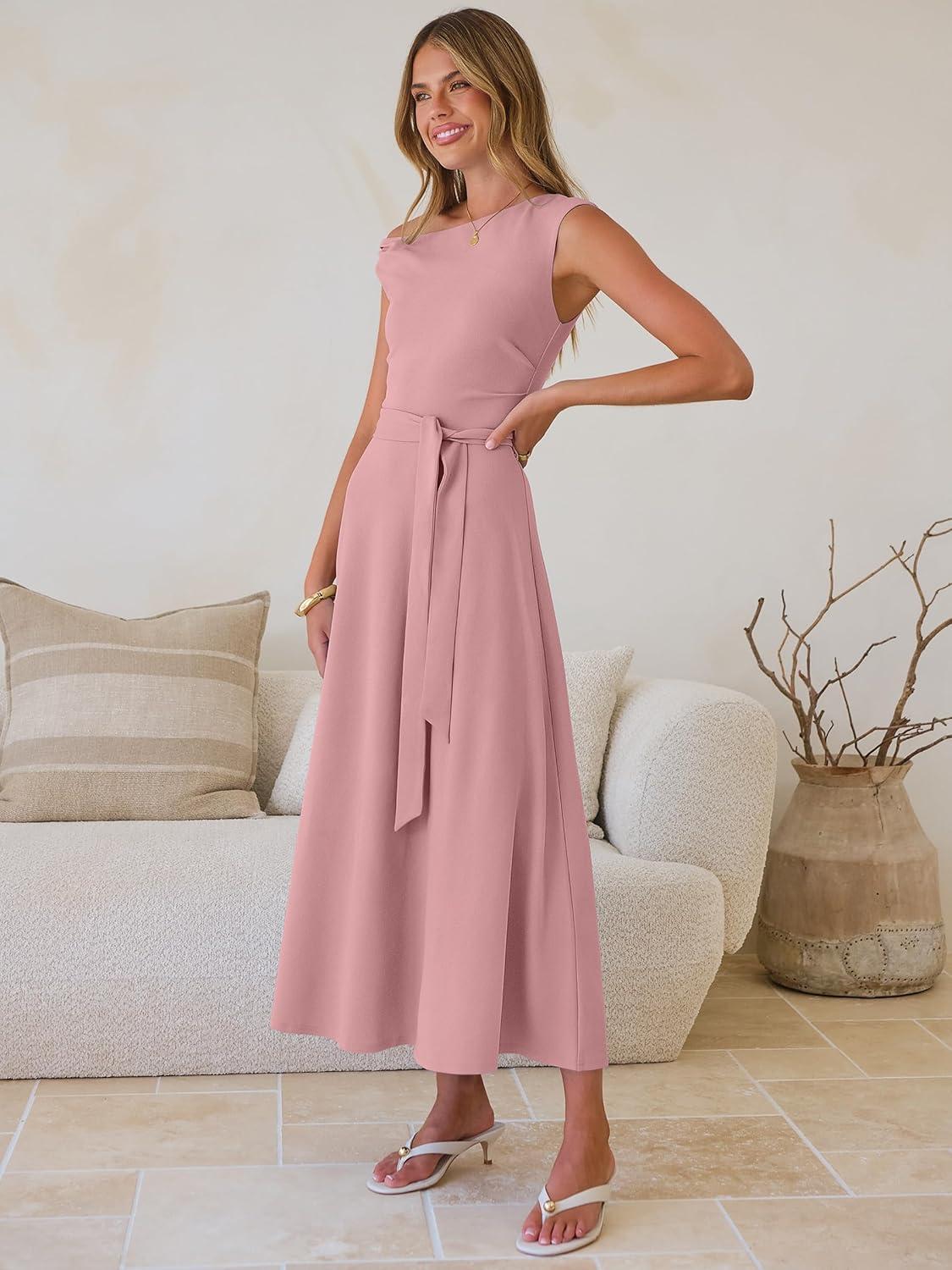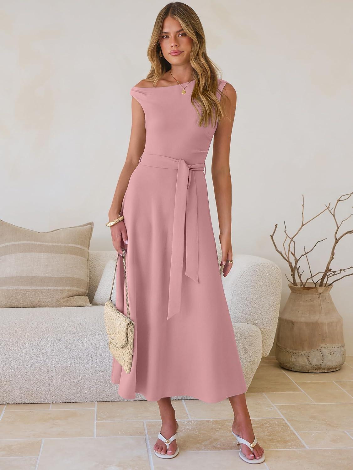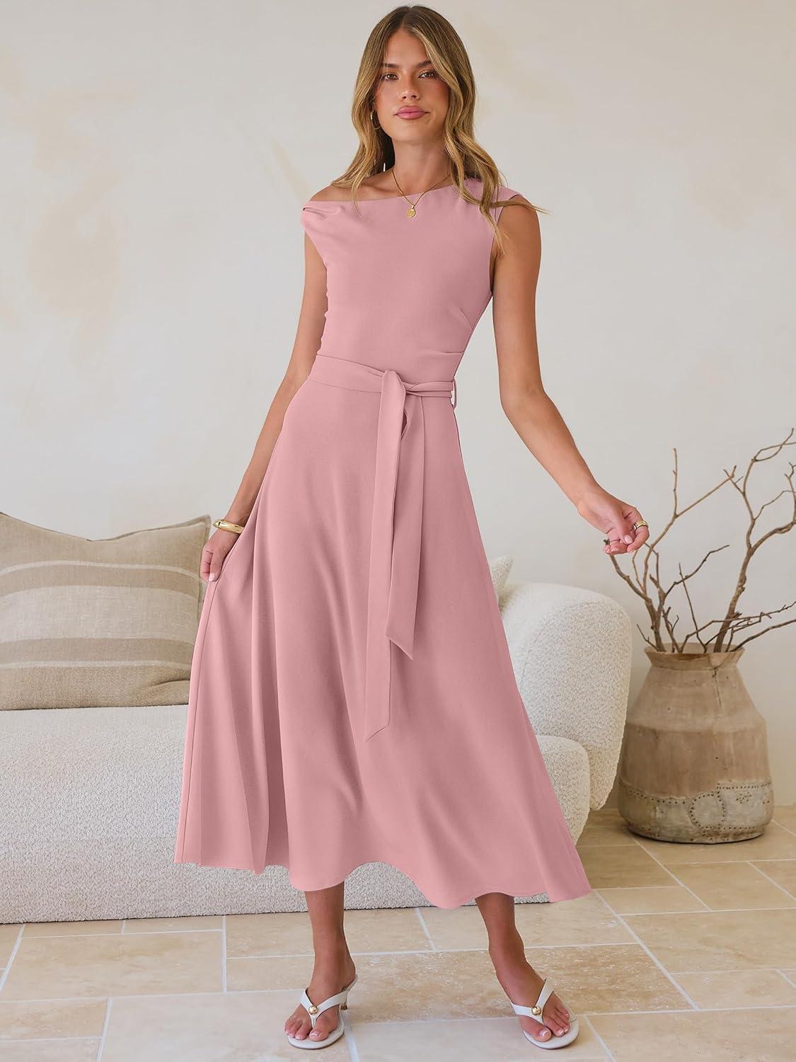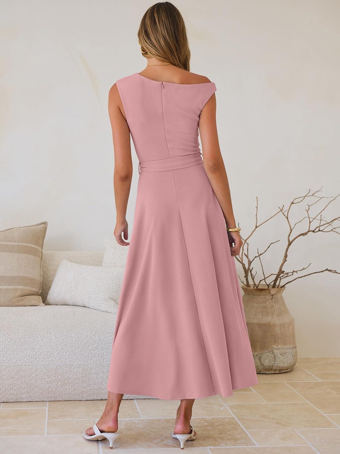 imageANRABESS Women One Off Shoulder Wedding Guest Formal Dress Sleeveless Flowy Spring Summer Cocktail Evening Maxi Dresses 2026Light Pink