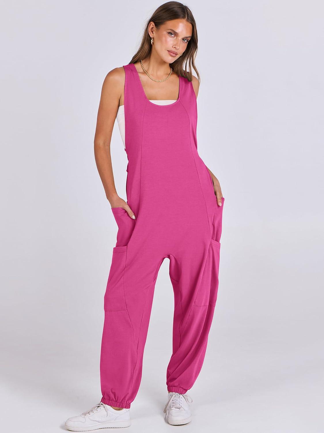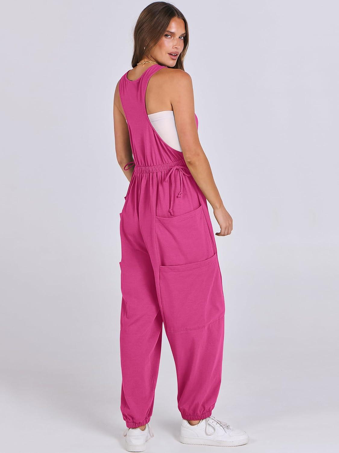 imageANRABESS Women Overalls Jumpsuits Loose Casual Dressy Sleeveless Baggy Harem Pants Romper Jumpers 2025 Trendy Summer OutfitsHot Pink