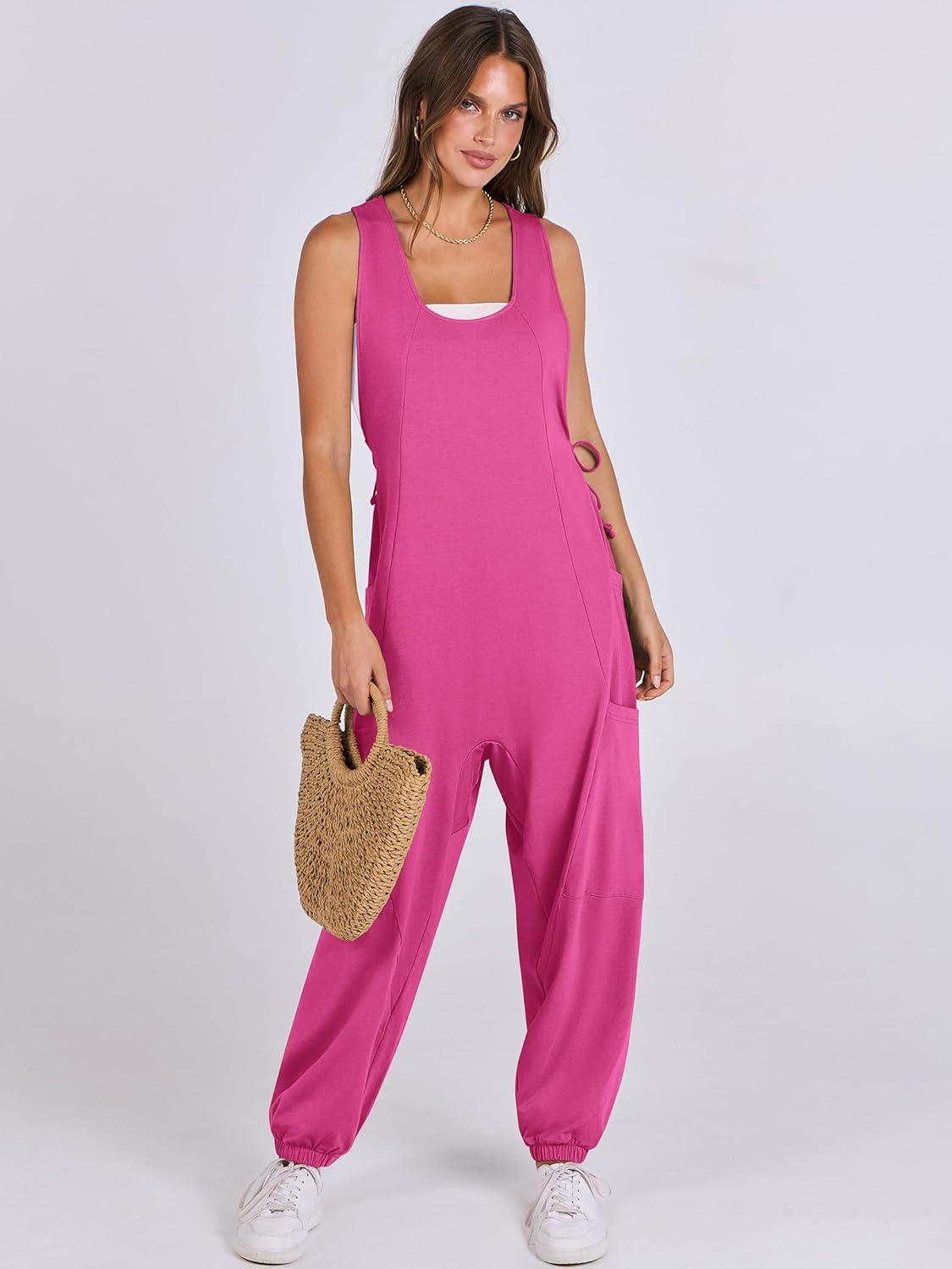 ANRABESS Women Overalls Jumpsuits Loose Casual Dressy Sleeveless Baggy Harem Pants Romper Jumpers 2025 Trendy Summer Outfits(Hot Pink)