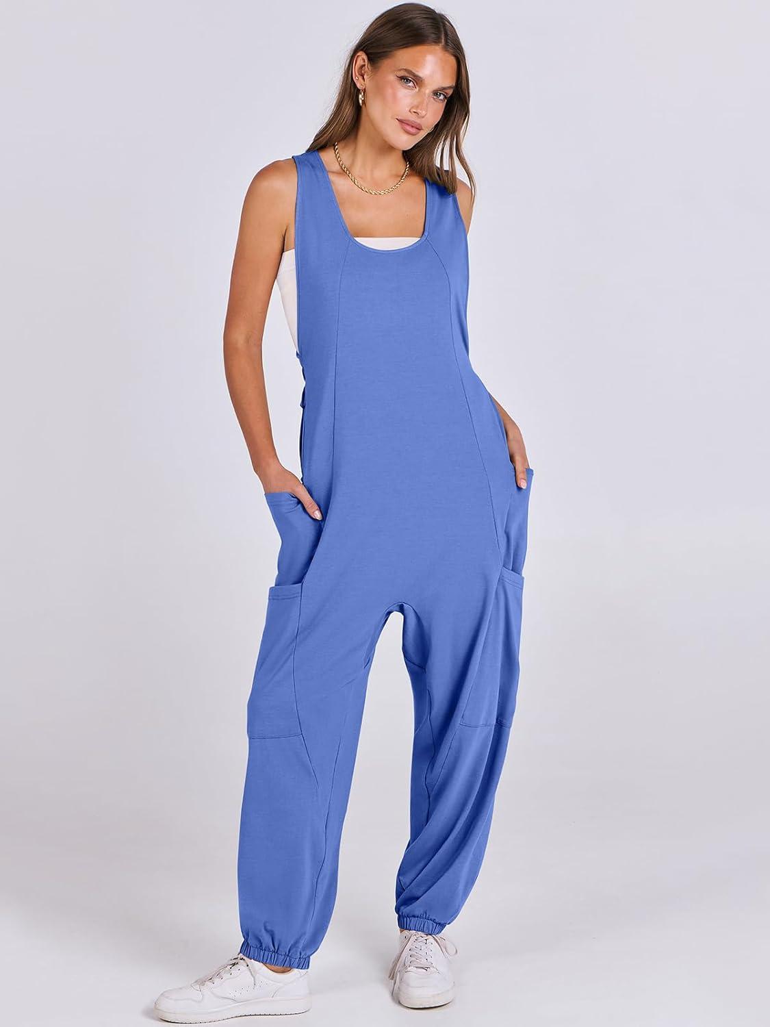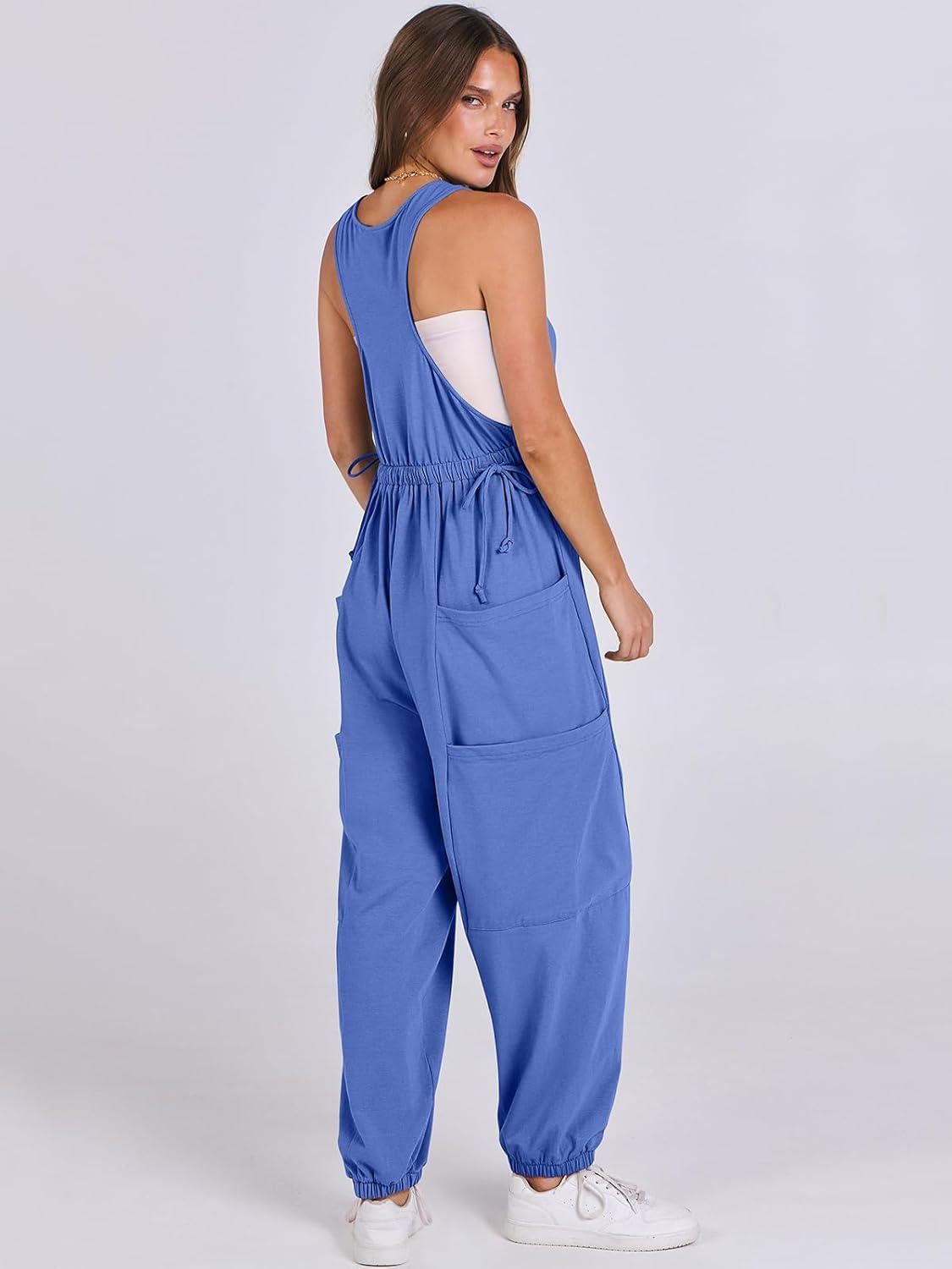 ANRABESS Women Overalls Jumpsuits Loose Casual Dressy Sleeveless Baggy Harem Pants Romper Jumpers 2026 Trendy Summer Outfits(Blue)