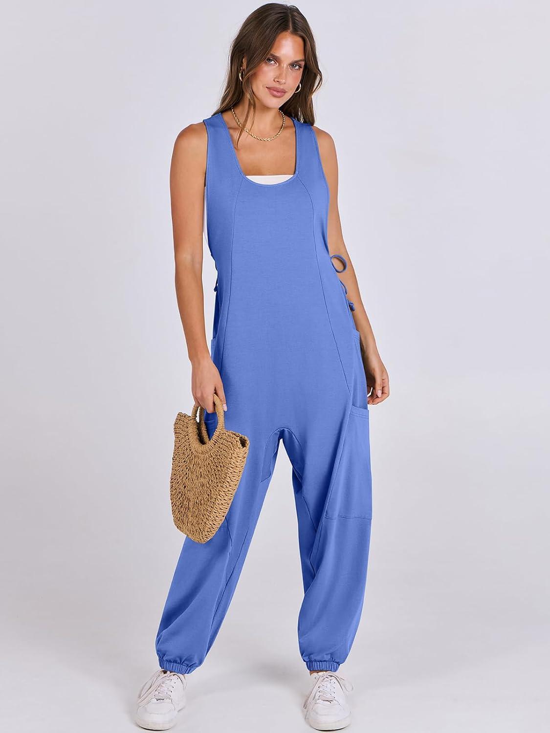 ANRABESS Women Overalls Jumpsuits Loose Casual Dressy Sleeveless Baggy Harem Pants Romper Jumpers 2026 Trendy Summer Outfits(Sky Blue)
