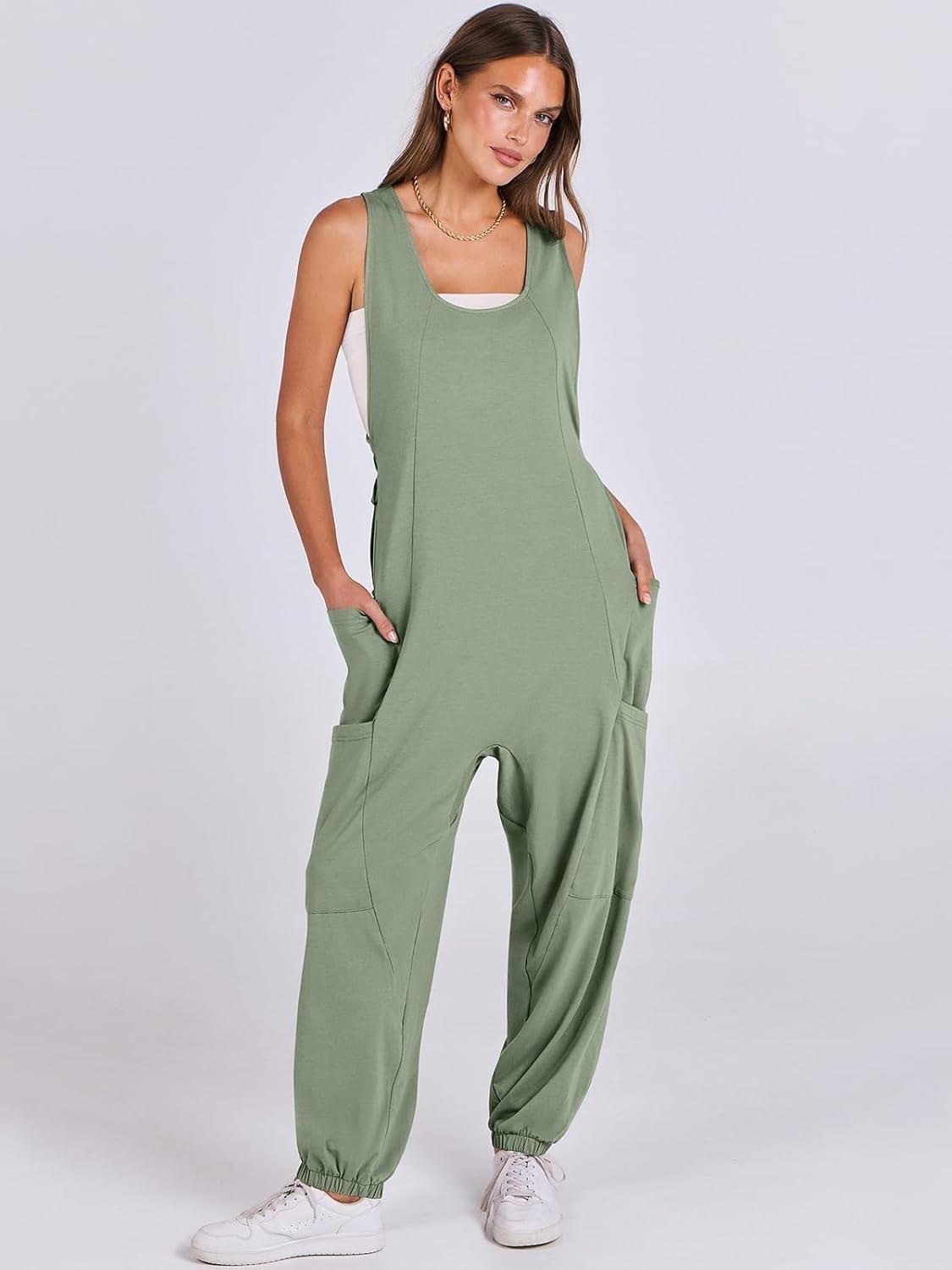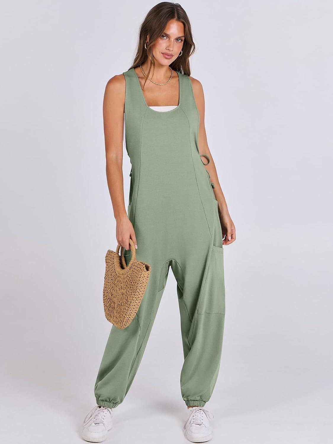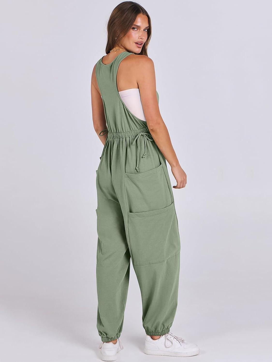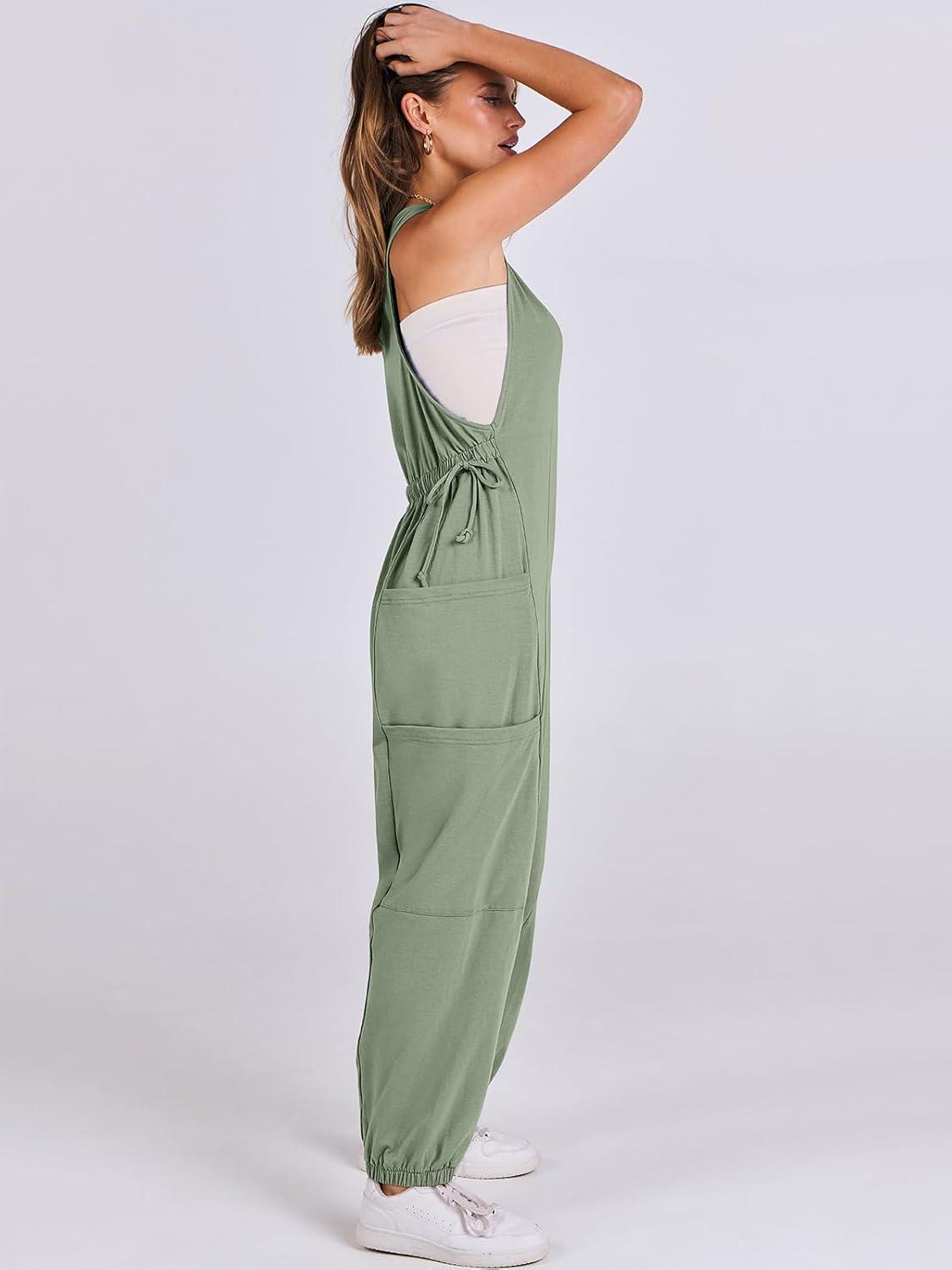 ANRABESS Women Overalls Jumpsuits Loose Casual Dressy Sleeveless Baggy Harem Pants Romper Jumpers 2026 Trendy Summer Outfits(Green)