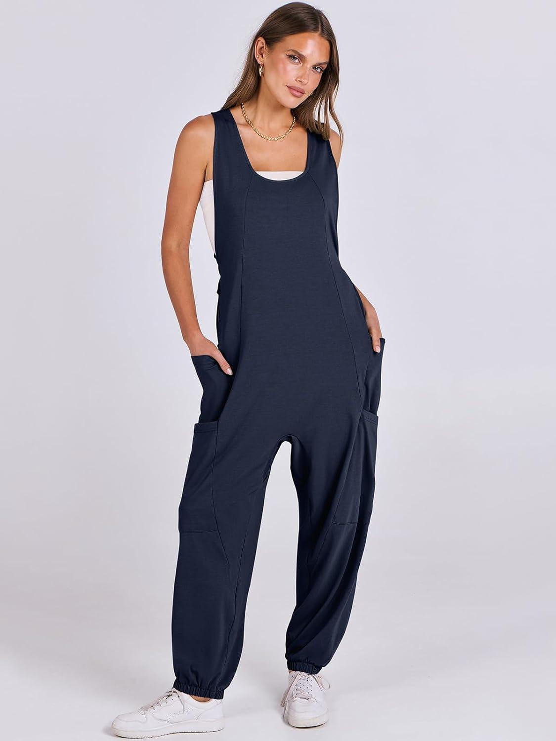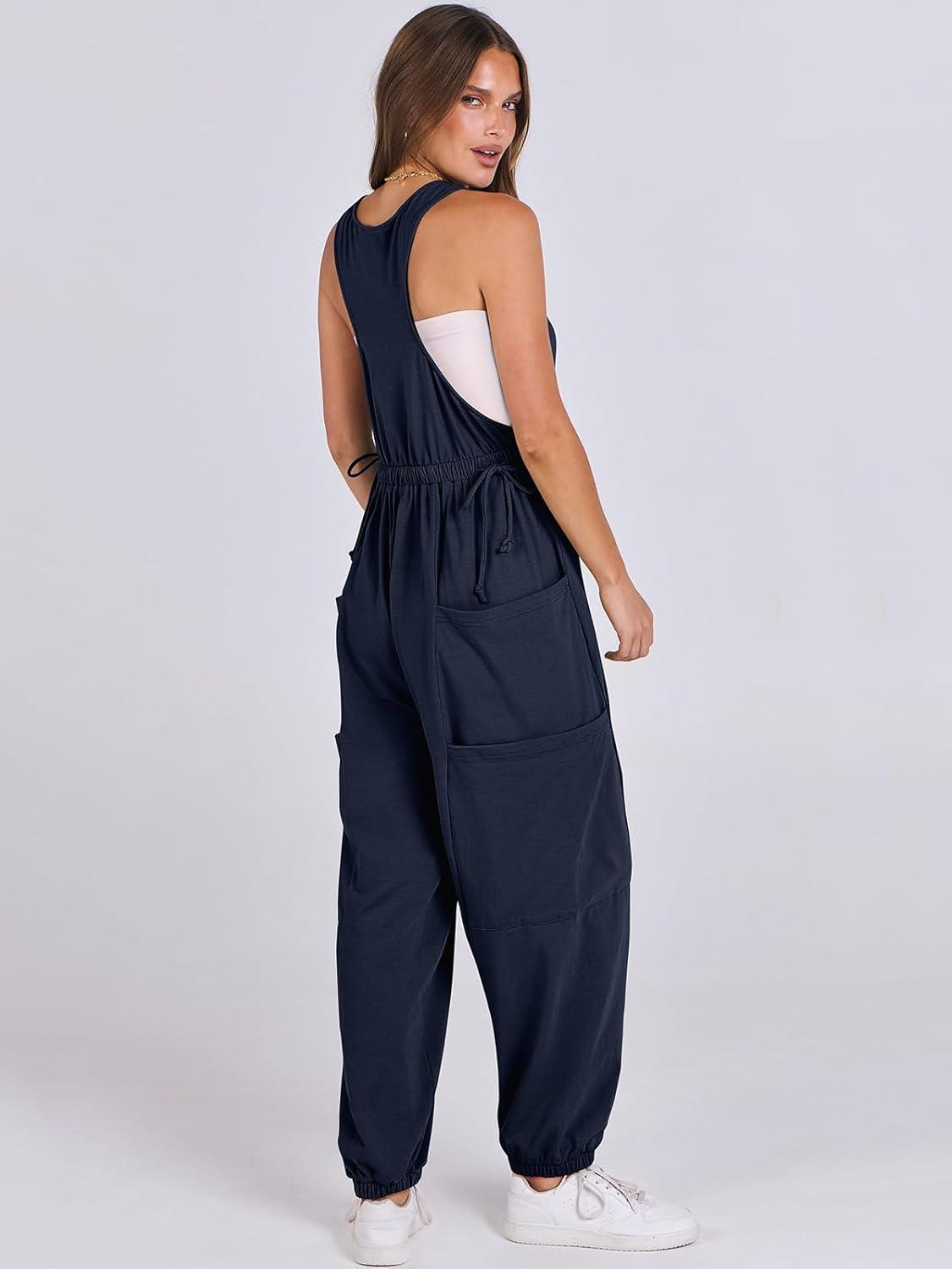 ANRABESS Women Overalls Jumpsuits Loose Casual Dressy Sleeveless Baggy Harem Pants Romper Jumpers 2026 Trendy Summer Outfits(Navy Blue)