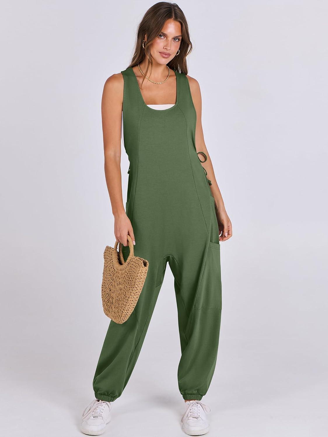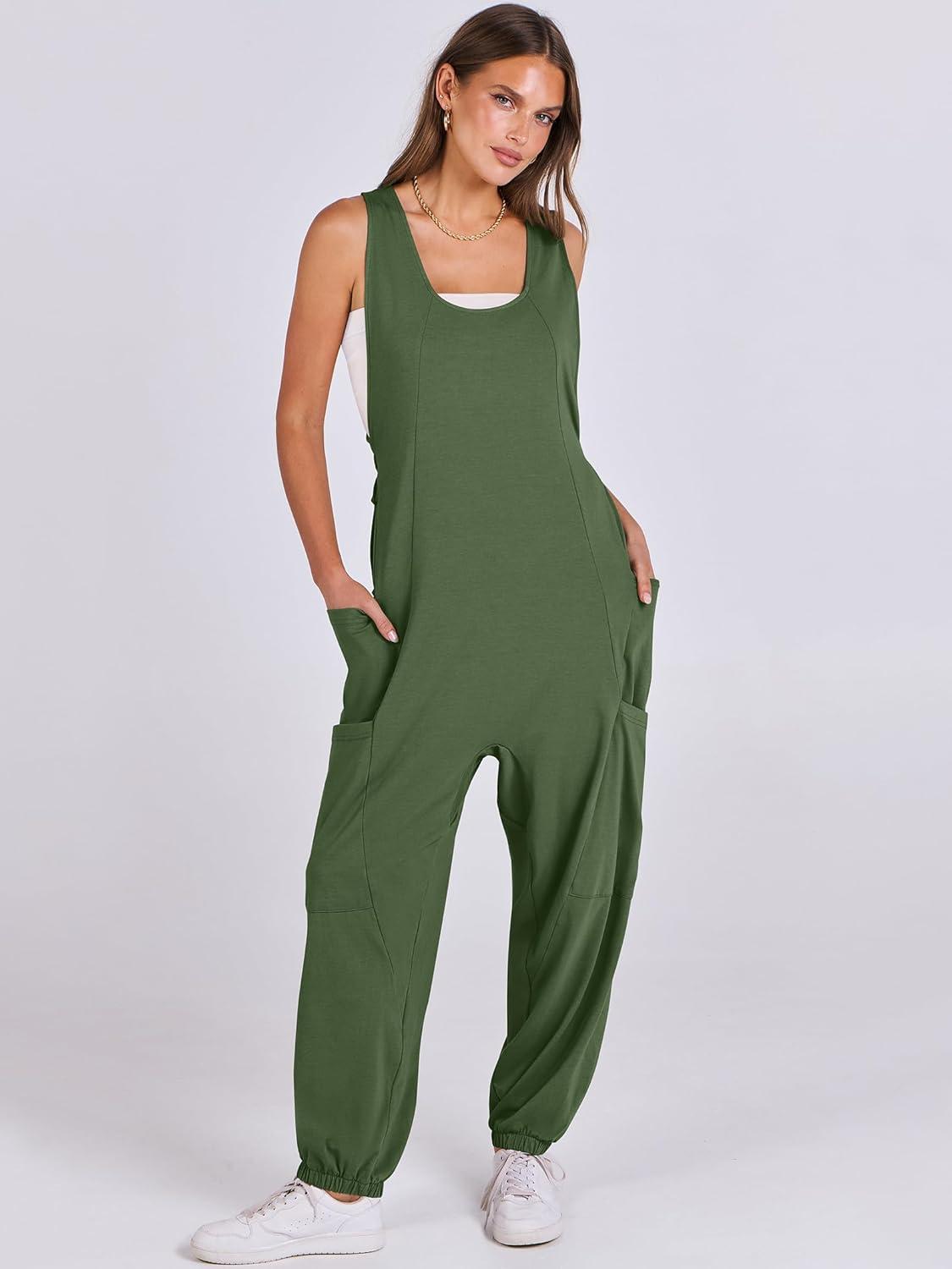 ANRABESS Women Overalls Jumpsuits Loose Casual Dressy Sleeveless Baggy Harem Pants Romper Jumpers 2026 Trendy Summer Outfits(Olive)