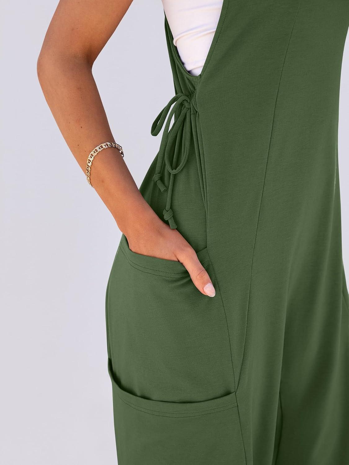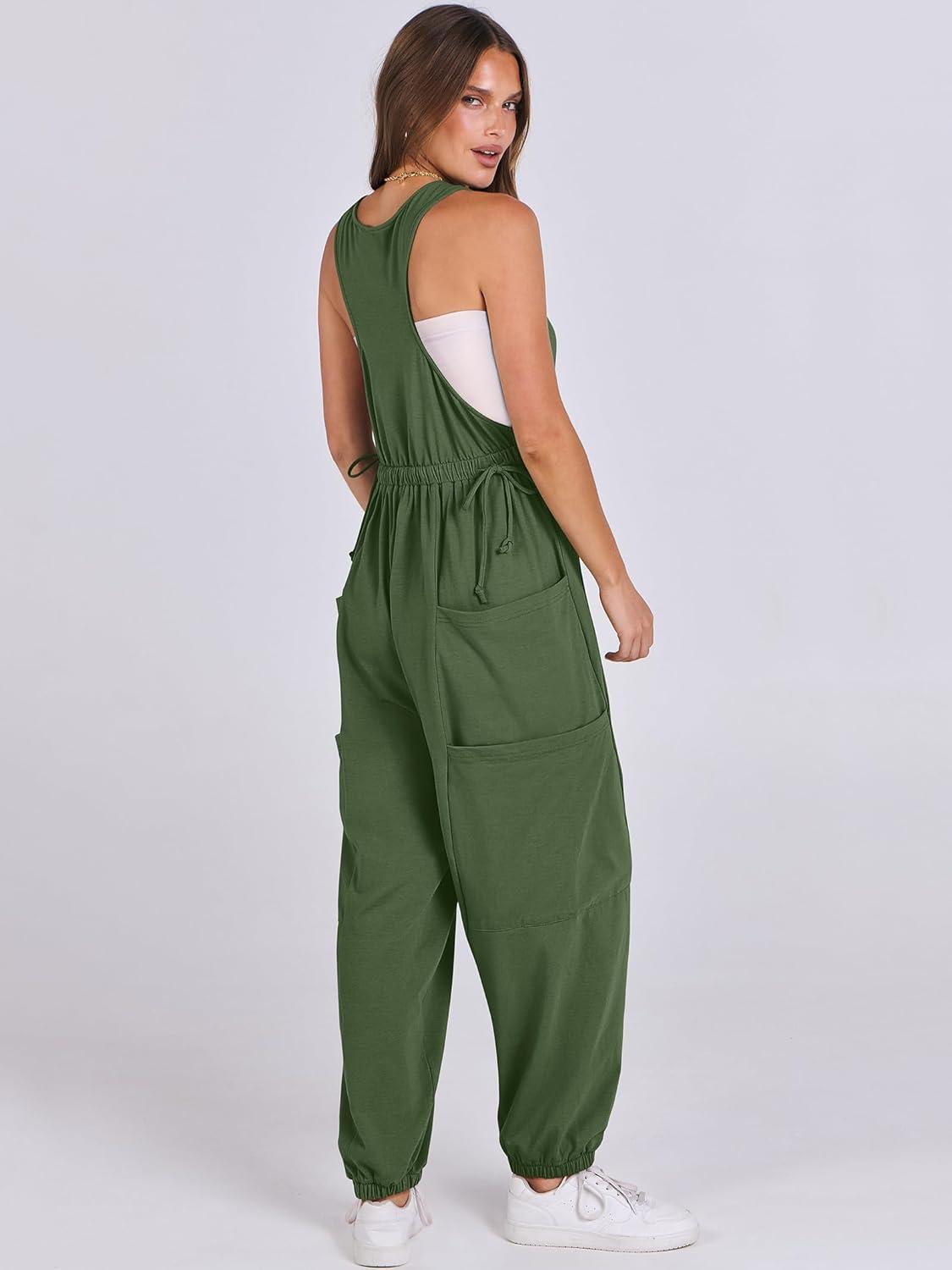 imageANRABESS Women Overalls Jumpsuits Loose Casual Dressy Sleeveless Baggy Harem Pants Romper Jumpers 2026 Trendy Summer OutfitsOlive
