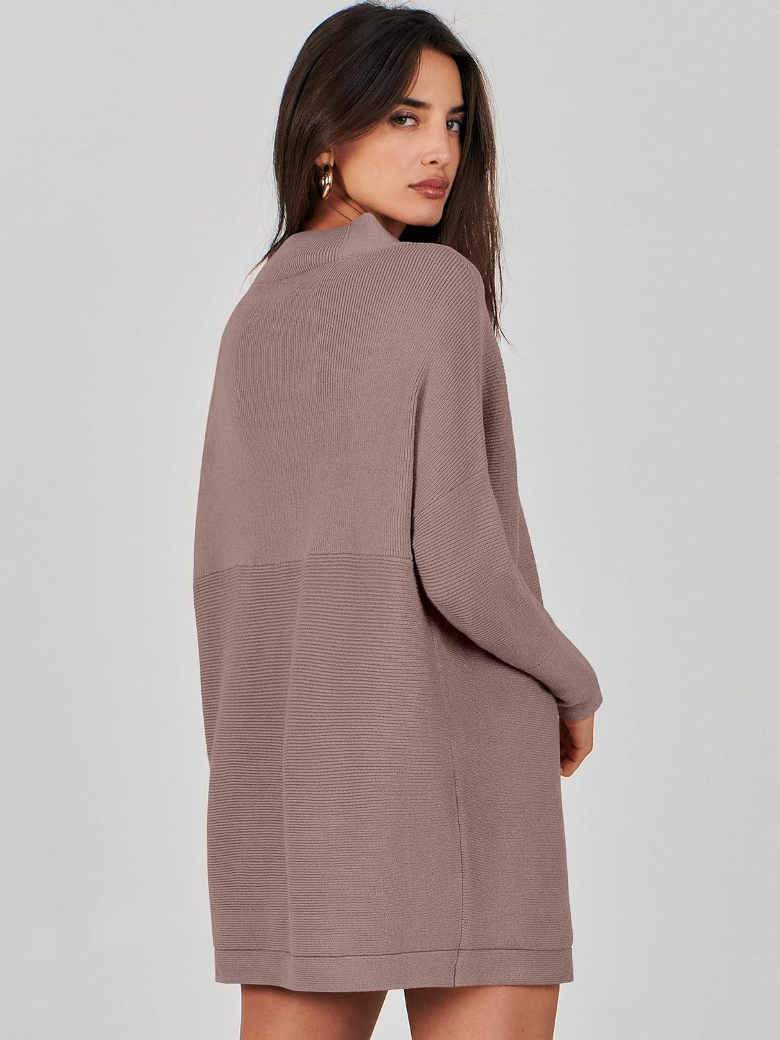 imageANRABESS Women Oversized Casual Loose Turtleneck Long Sleeve Slouchy Baggy Knit Tunic Sweaters Pullover 2025 Fall OutfitsPink