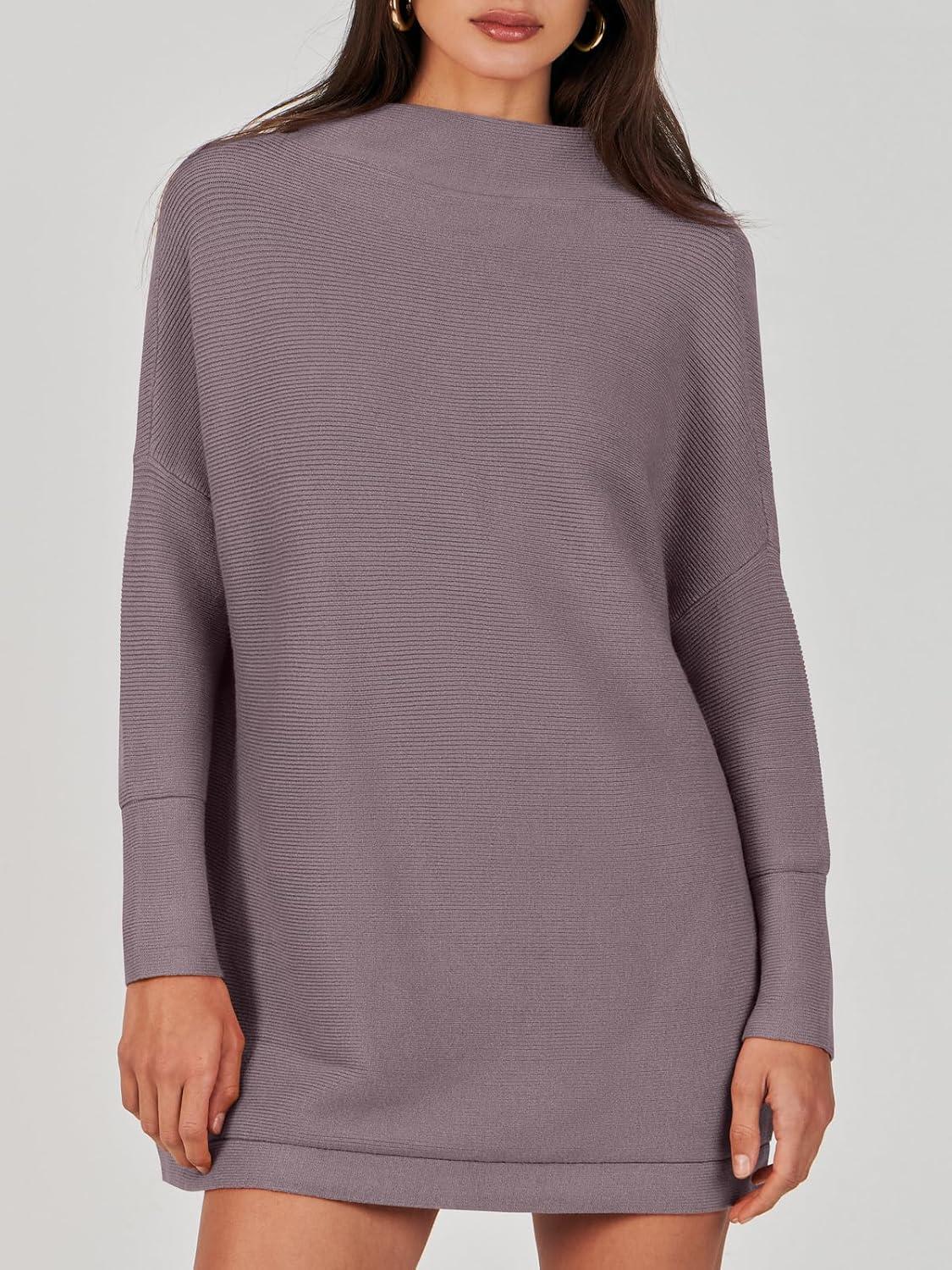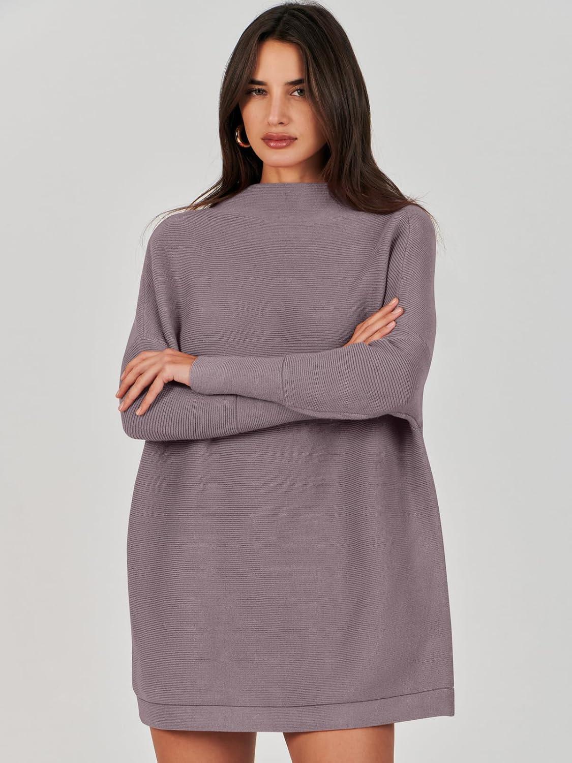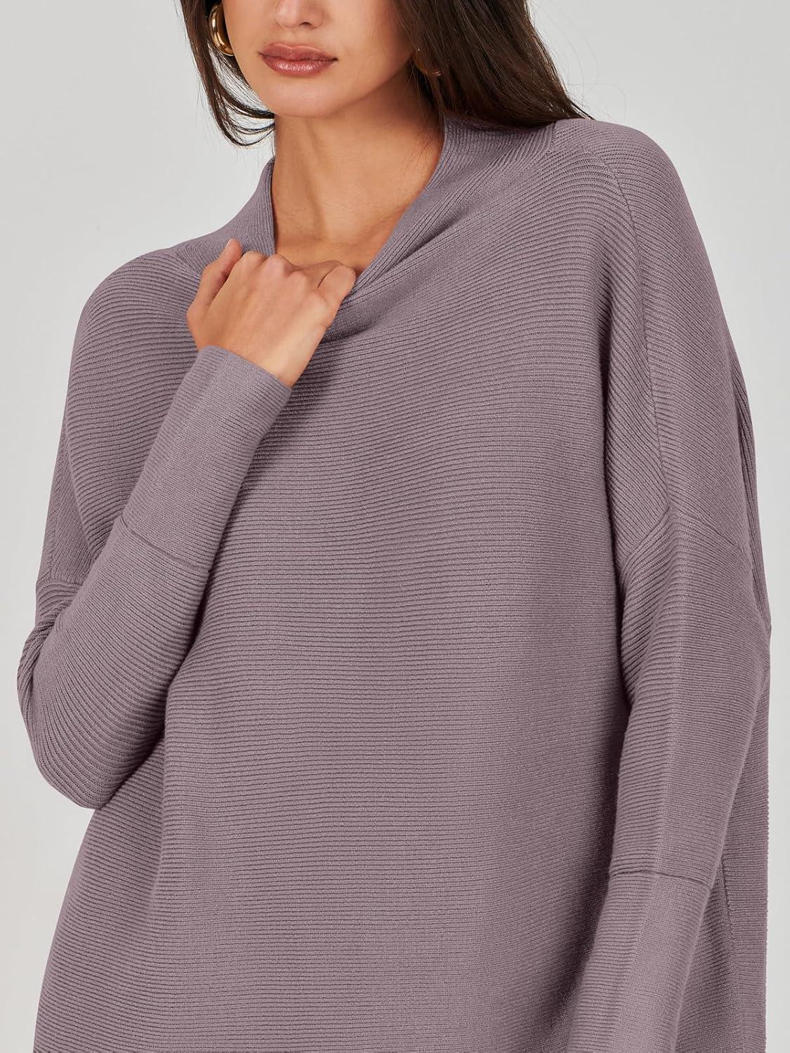 ANRABESS Women Oversized Casual Loose Turtleneck Long Sleeve Slouchy Baggy Knit Tunic Sweaters Pullover 2025 Fall Outfits(Purple)