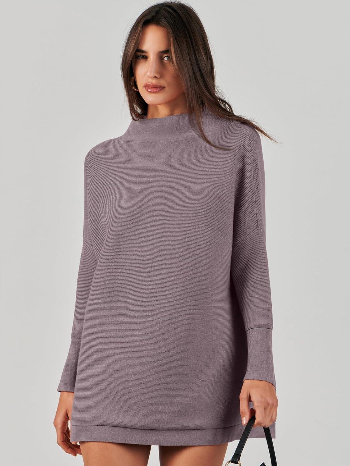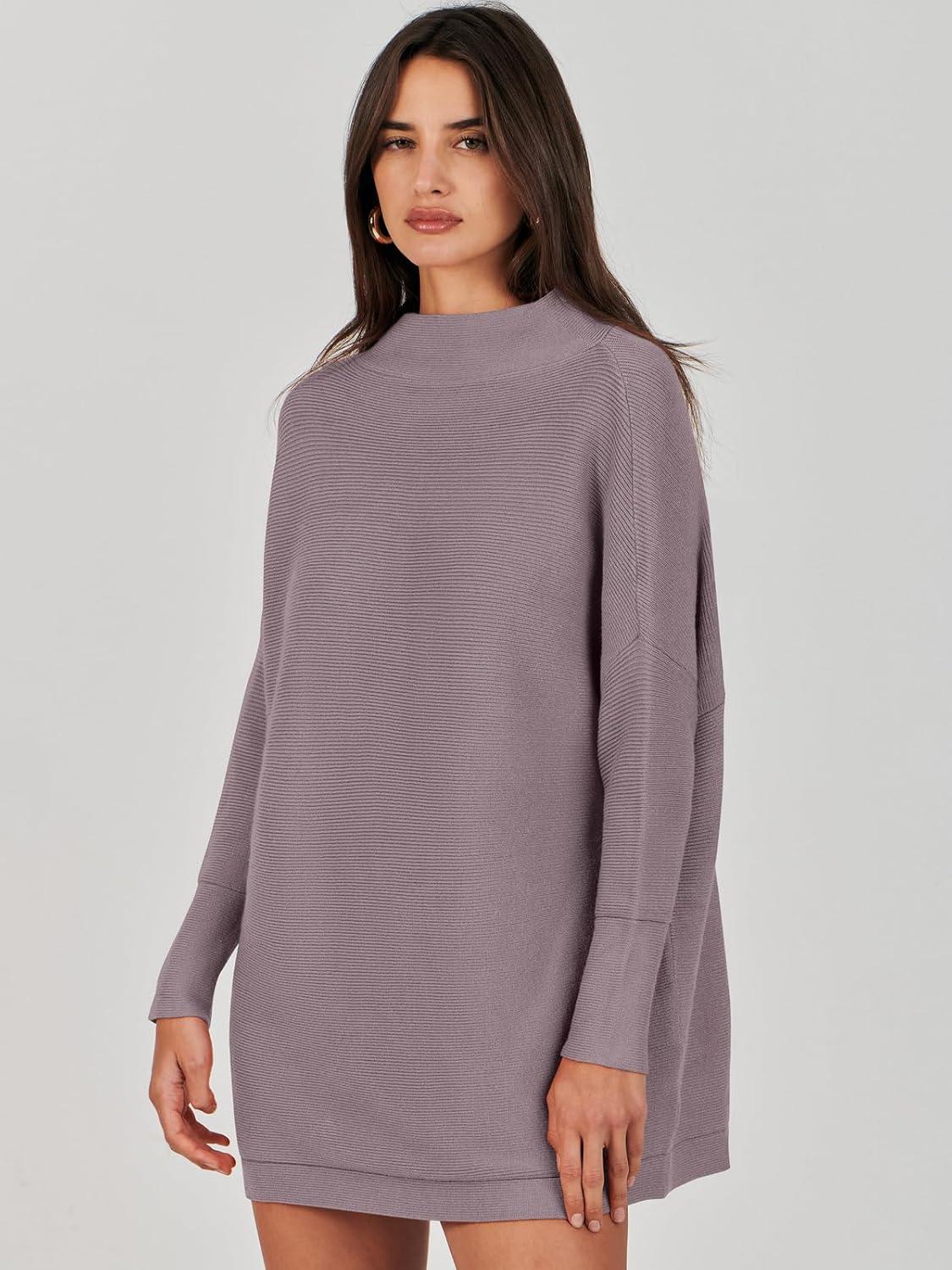 imageANRABESS Women Oversized Casual Loose Turtleneck Long Sleeve Slouchy Baggy Knit Tunic Sweaters Pullover 2025 Fall OutfitsPurple