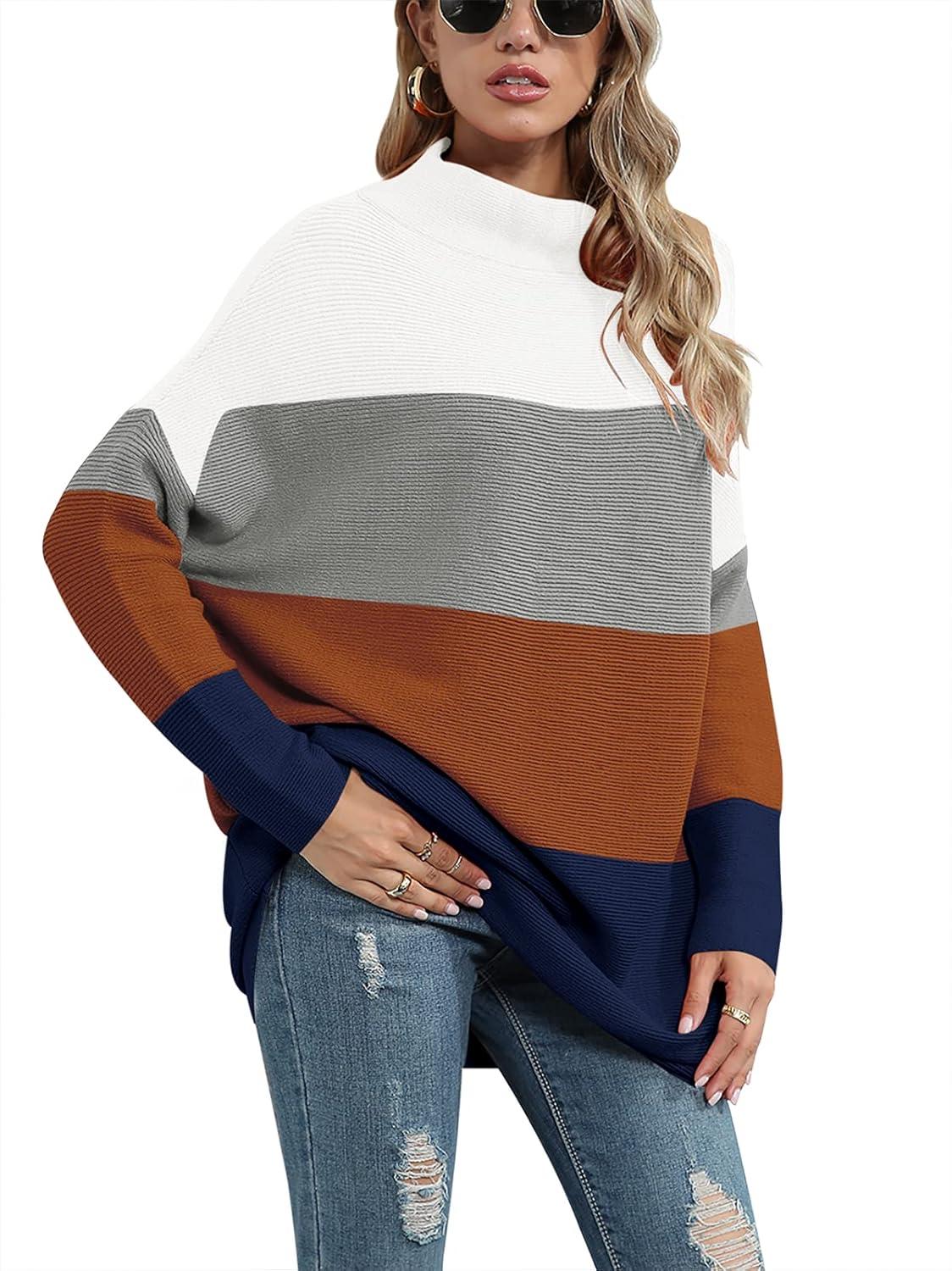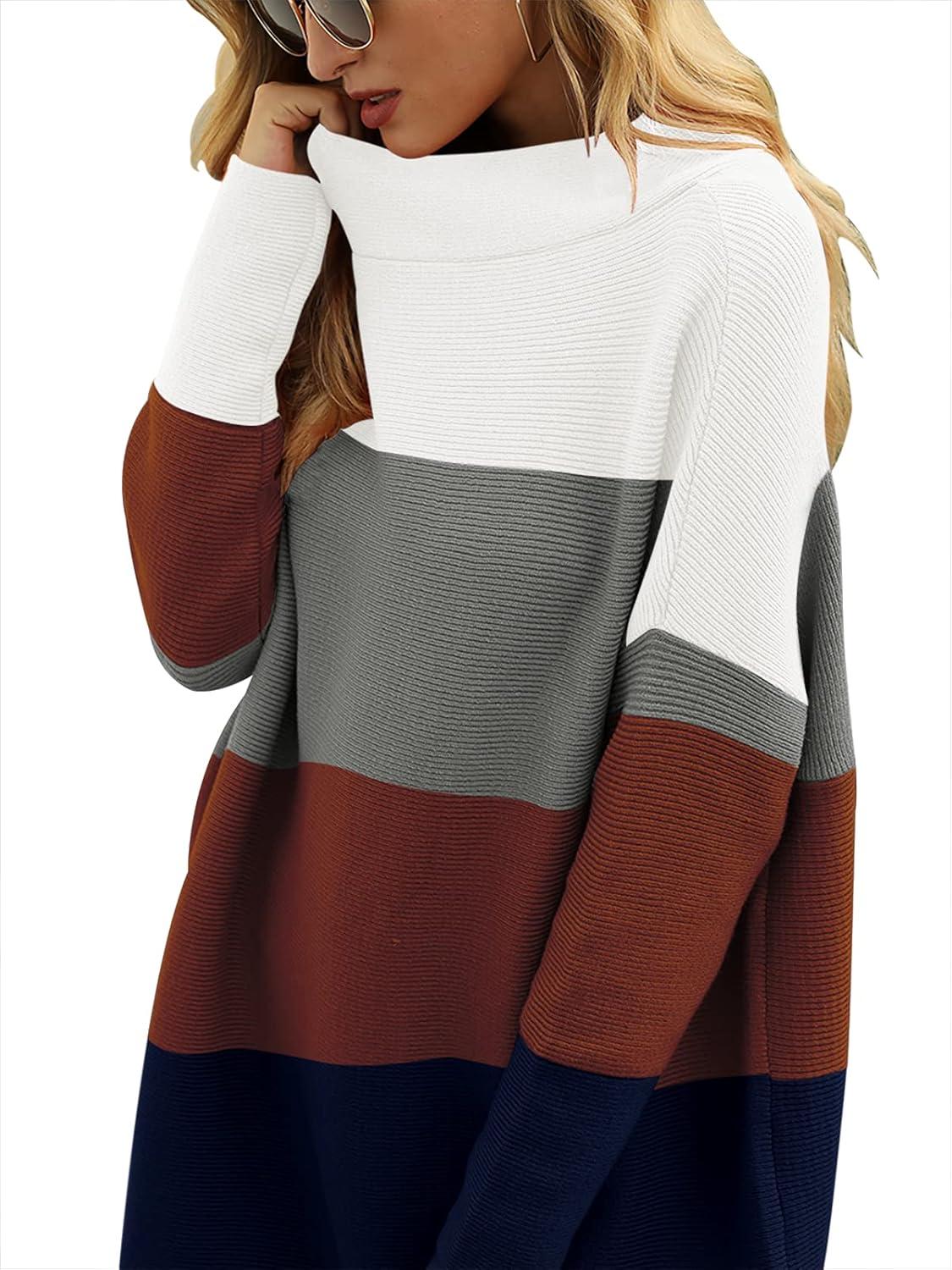 ANRABESS Women Oversized Casual Loose Turtleneck Long Sleeve Slouchy Baggy Knit Tunic Sweaters Pullover 2025 Fall Outfits(White Gray)