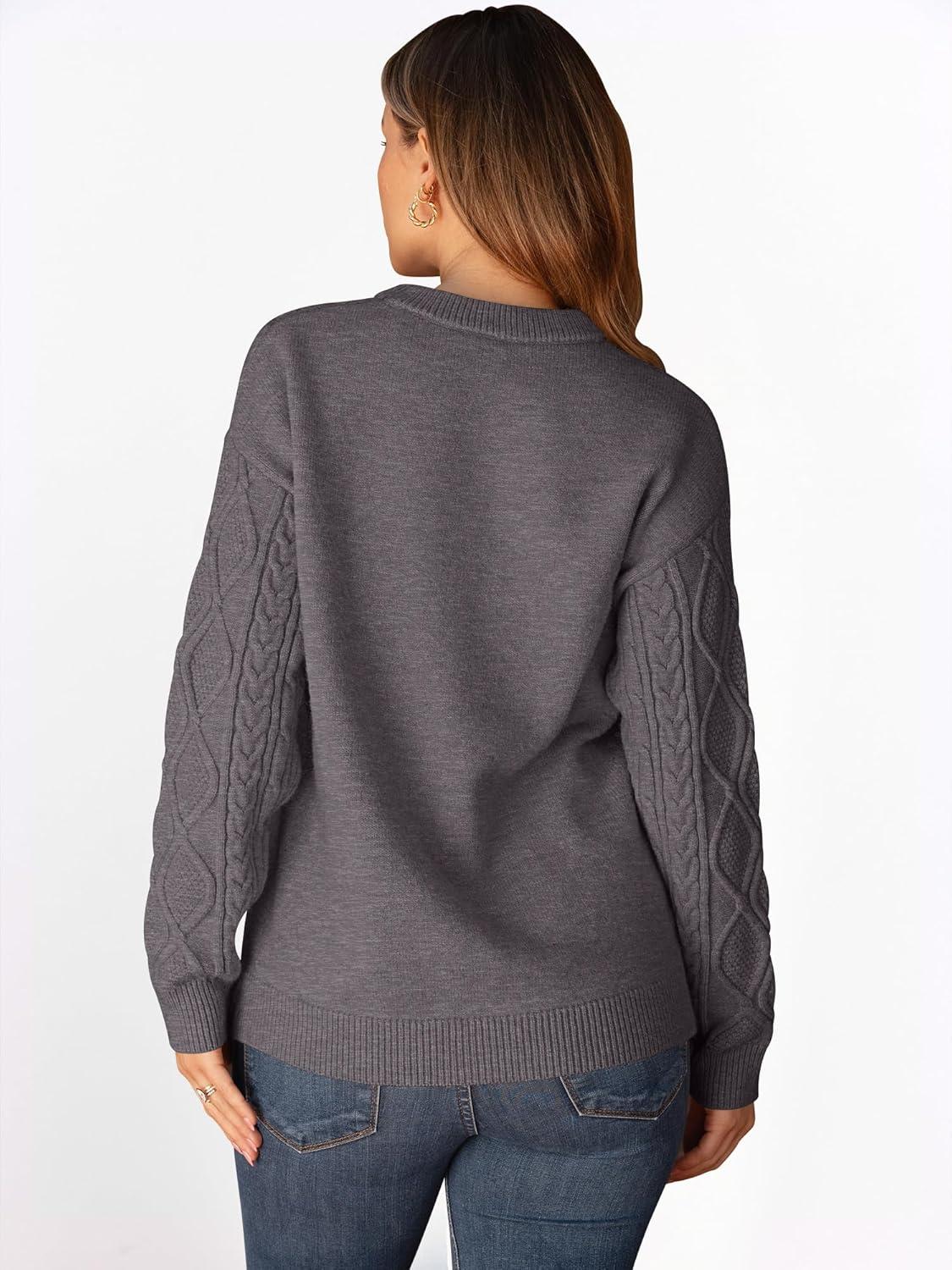 imageANRABESS Women Oversized Chunky Cable Knitted Vintage Sweater 2025 Fall Winter OutfitsNutmeg