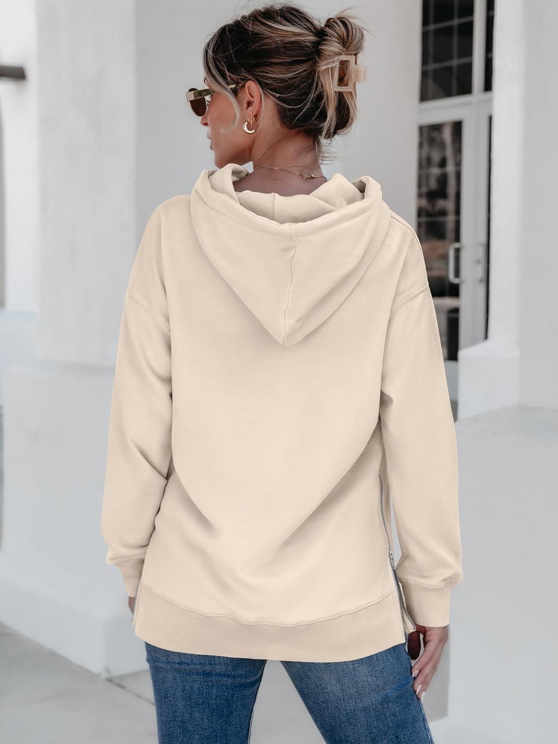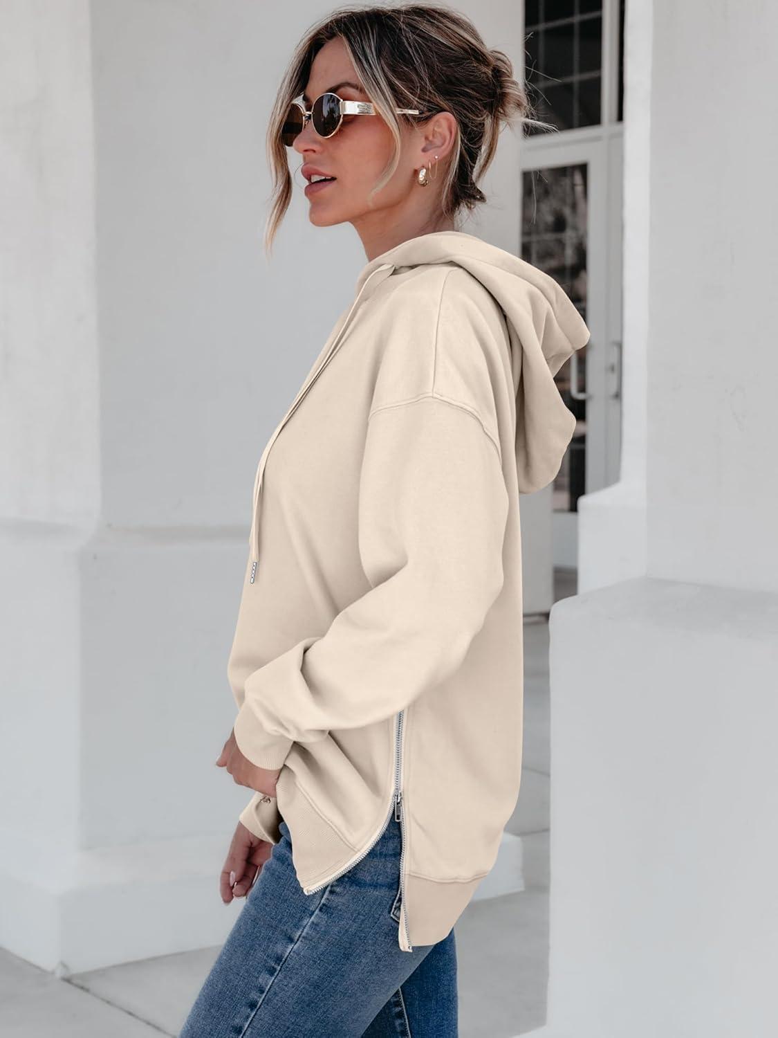 imageANRABESS Women Oversized Hoodies Side Zipper Fleece Long Sweatshirts Lightweight Tunic Pullover 2025 Fall Trendy ClothesApricot