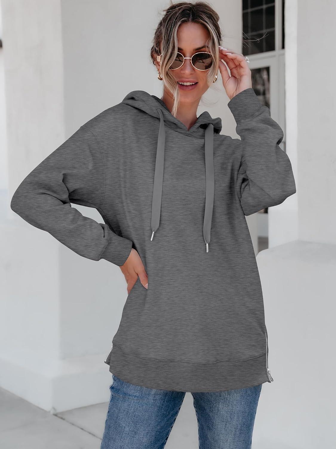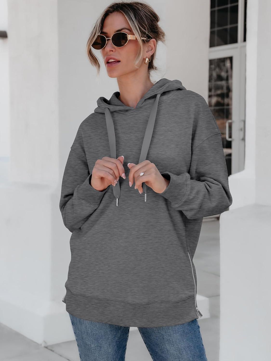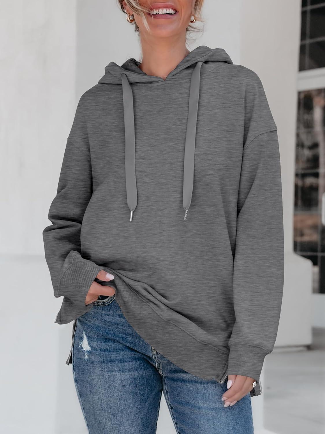 ANRABESS Women Oversized Hoodies Side Zipper Fleece Long Sweatshirts Lightweight Tunic Pullover 2025 Fall Trendy Clothes(Dark Grey)