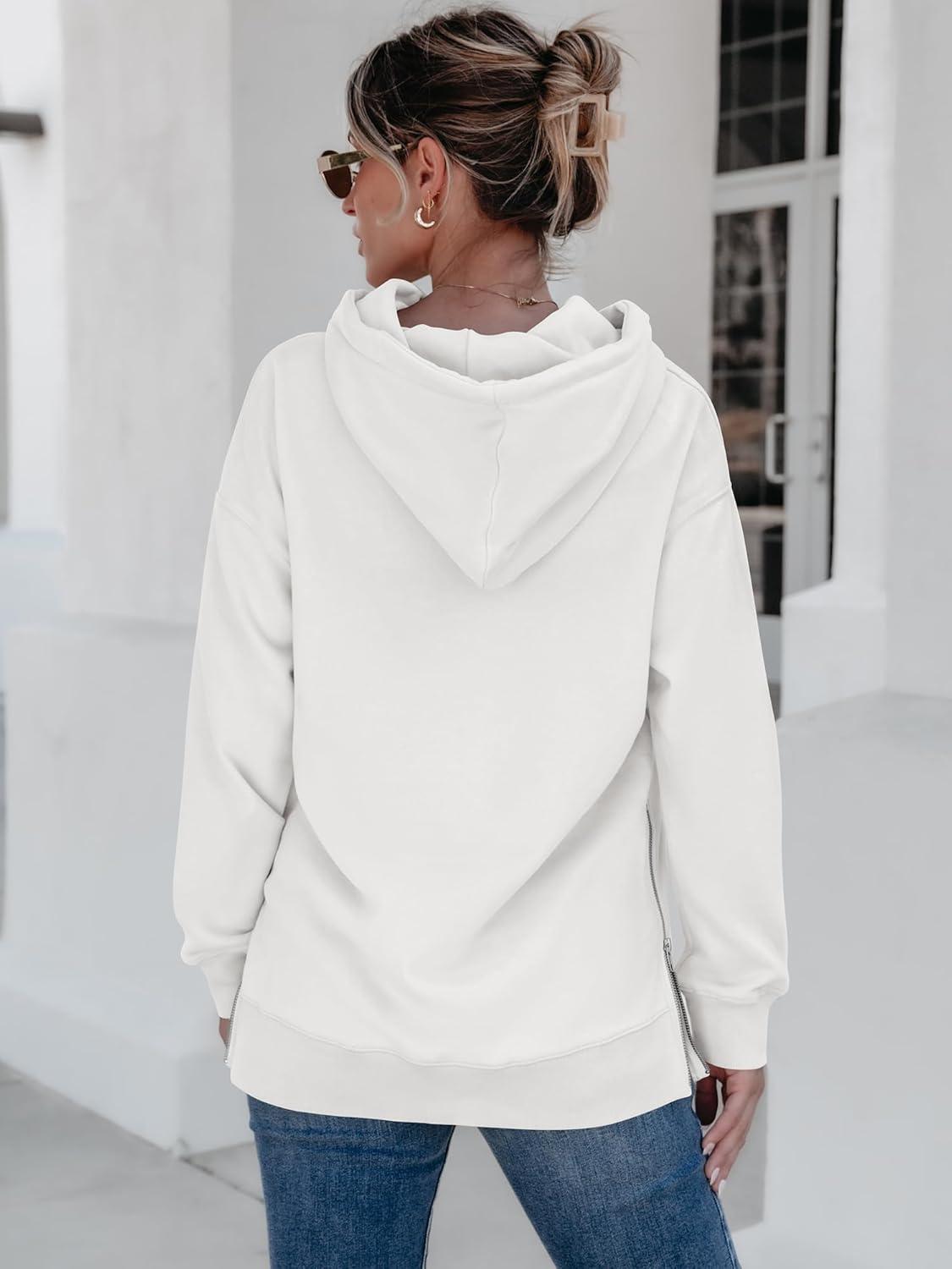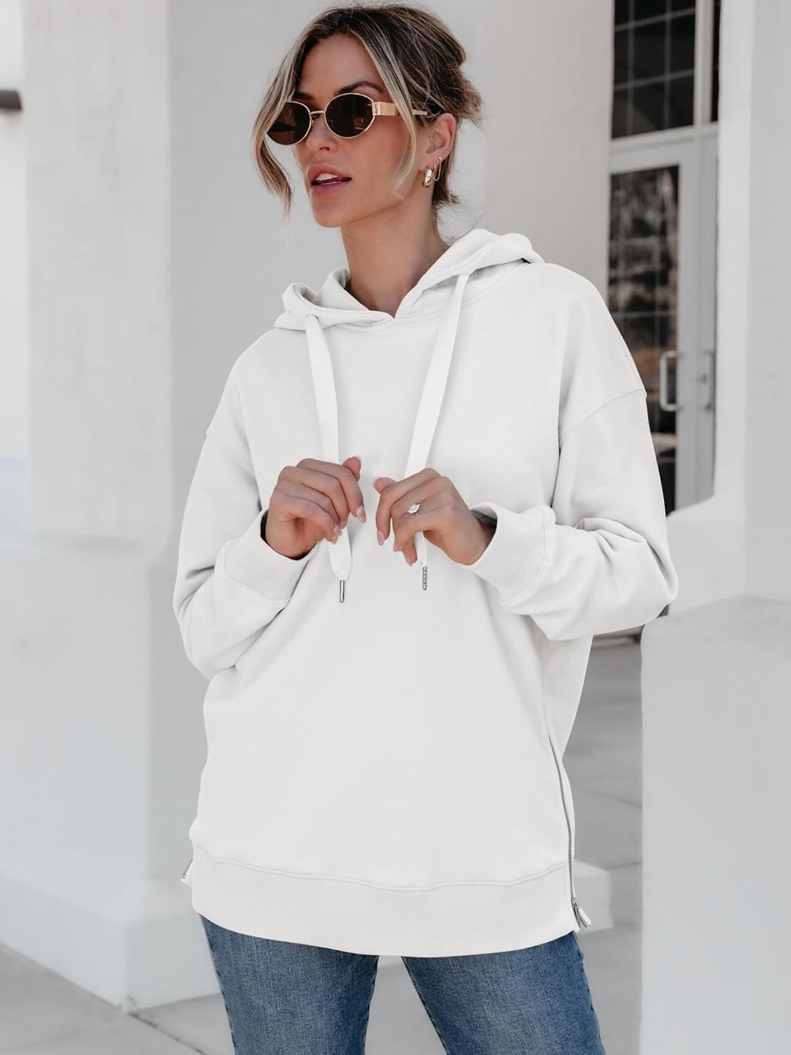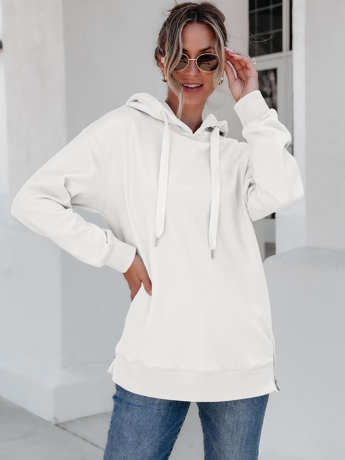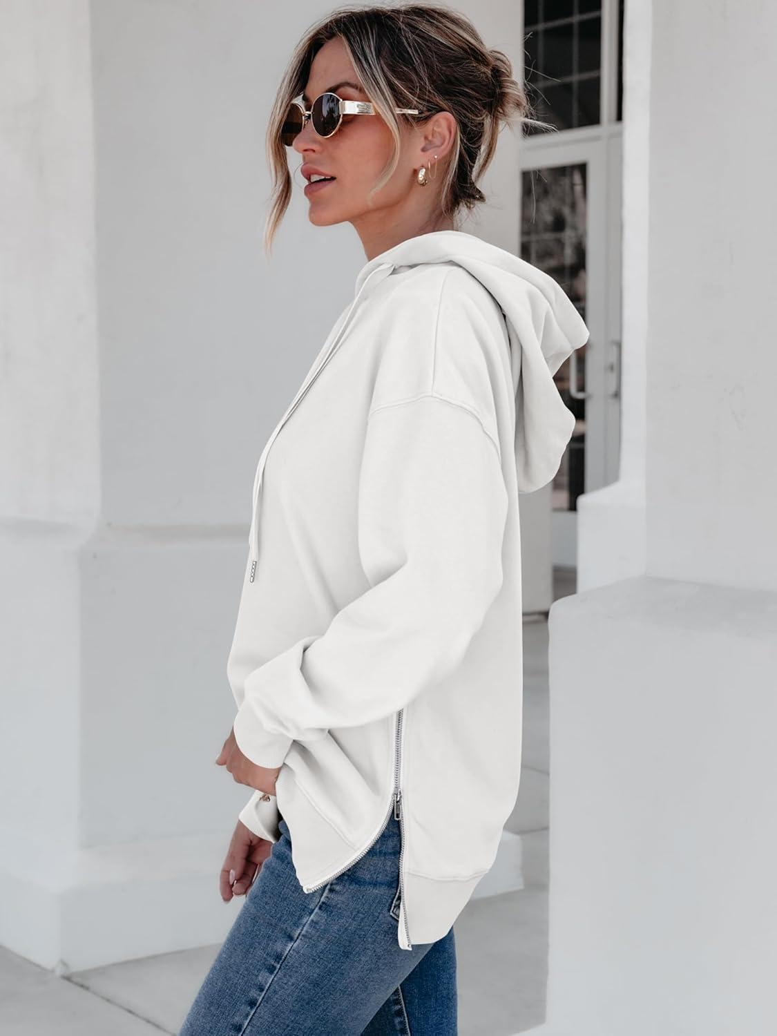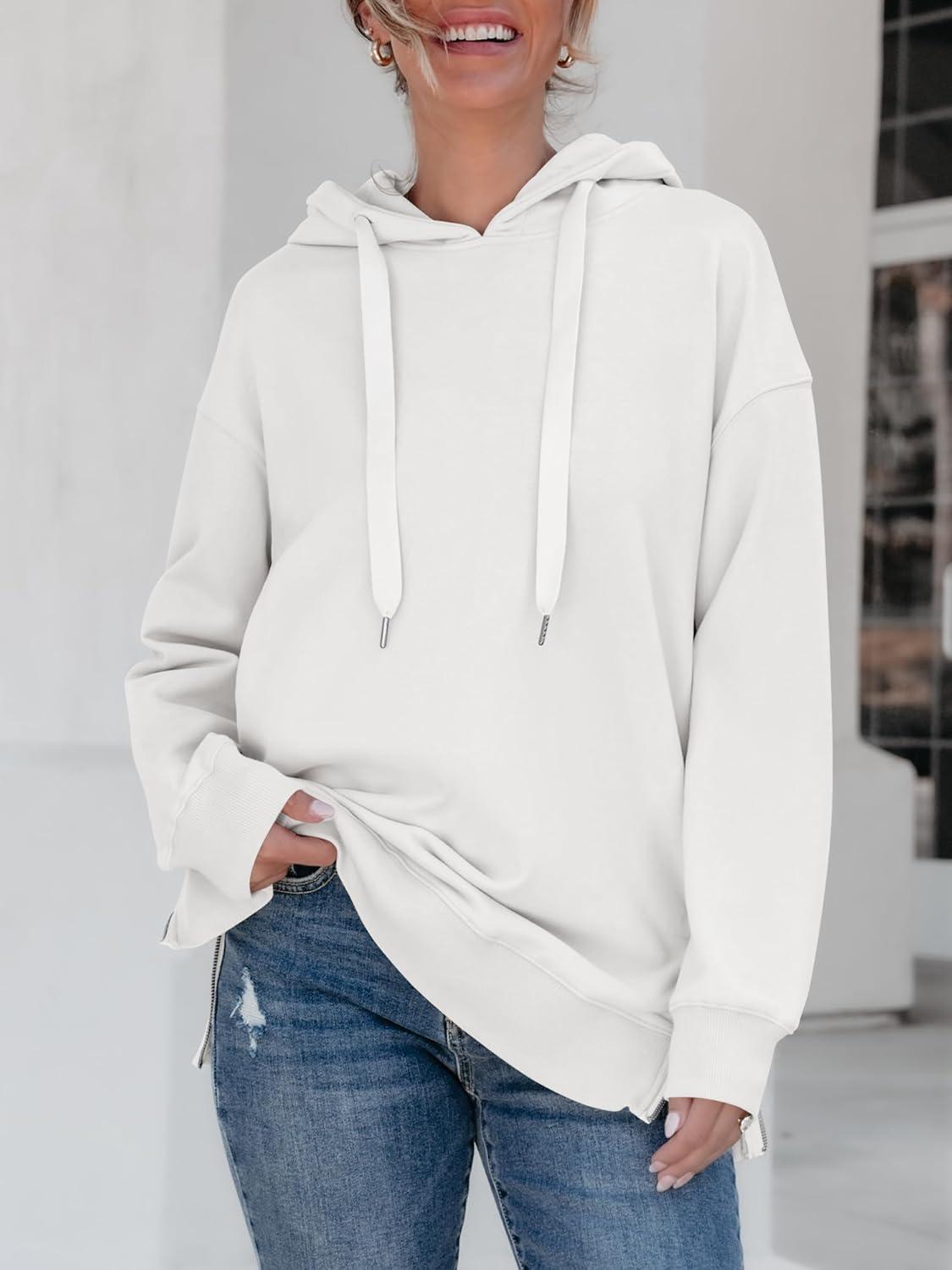 ANRABESS Women Oversized Hoodies Side Zipper Fleece Long Sweatshirts Lightweight Tunic Pullover 2025 Fall Trendy Clothes(White)
