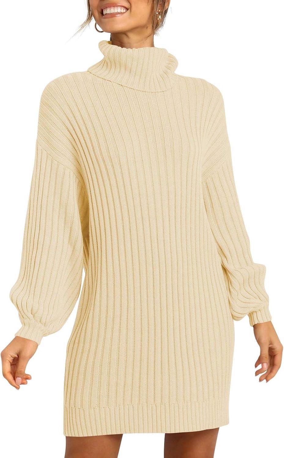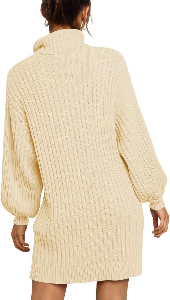 imageANRABESS Women Oversized Sweater Dress Turtleneck Batwing Long Sleeve Ribbed Knit Loose 2025 Fall Winter Casual Short DressApricot
