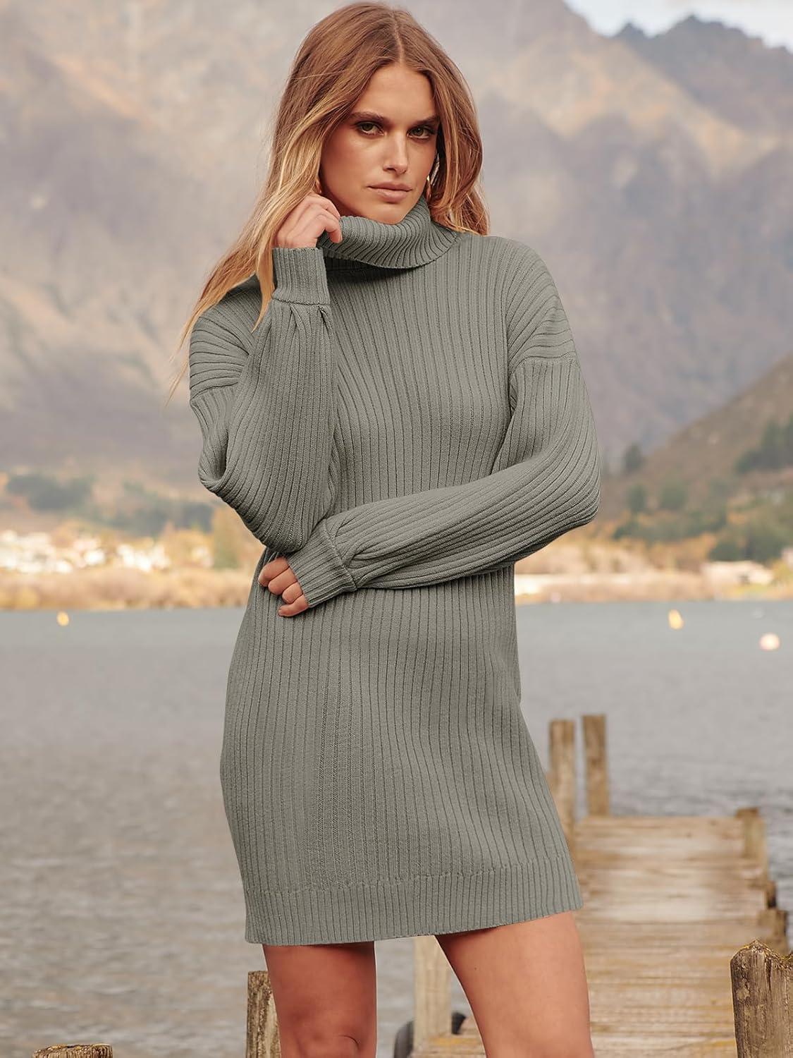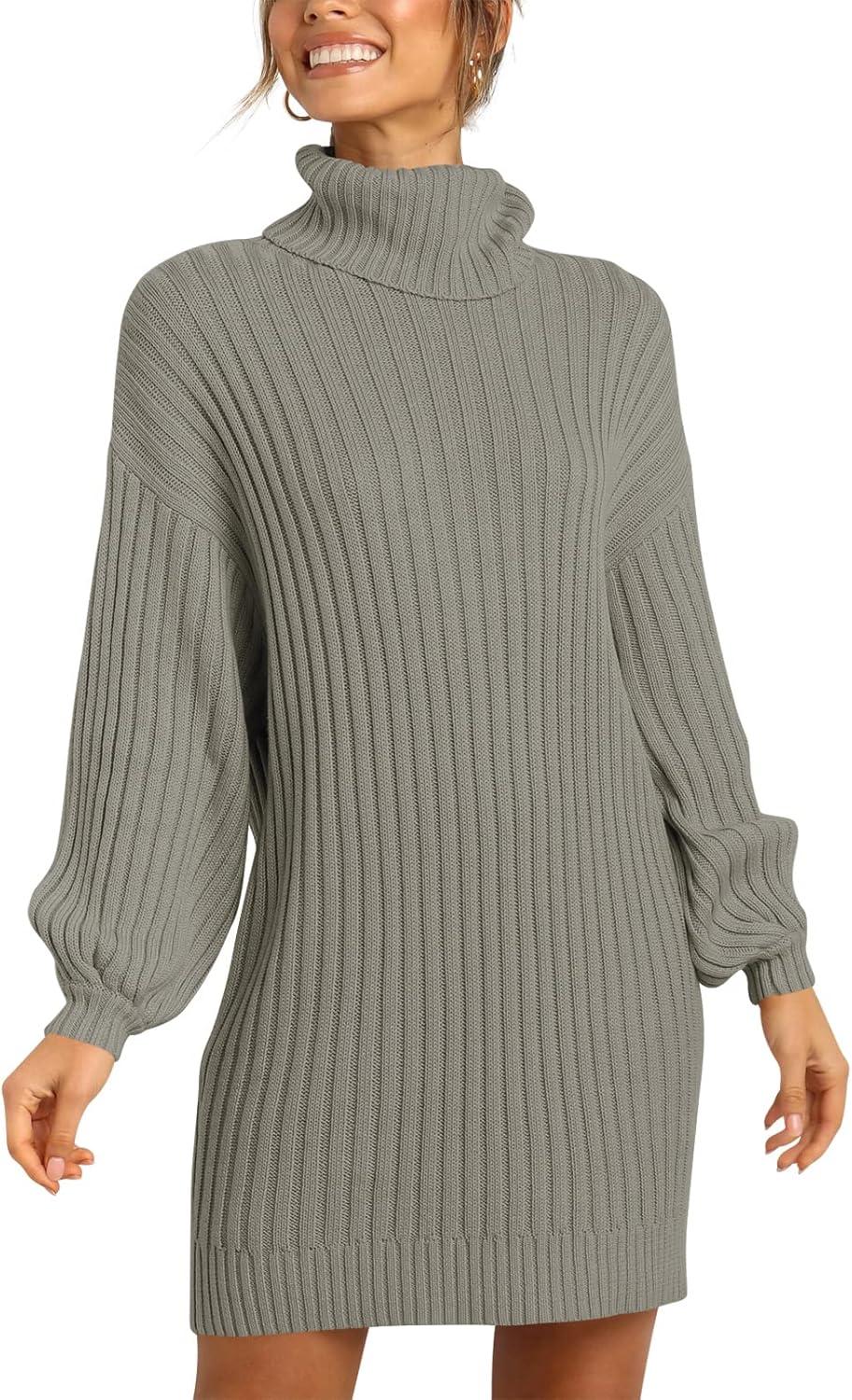 imageANRABESS Women Oversized Sweater Dress Turtleneck Batwing Long Sleeve Ribbed Knit Loose 2025 Fall Winter Casual Short DressCoffee Gray