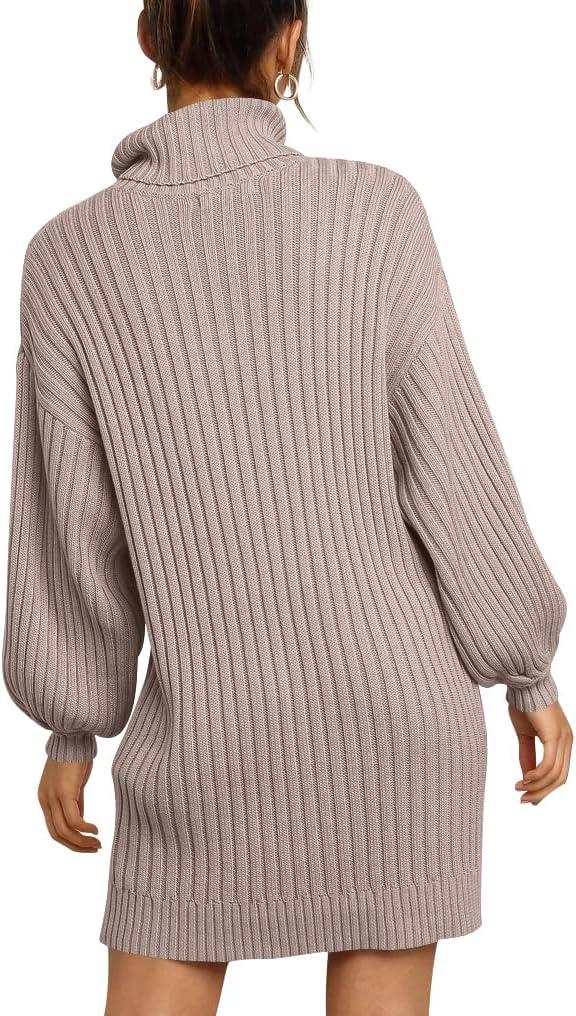 imageANRABESS Women Oversized Sweater Dress Turtleneck Batwing Long Sleeve Ribbed Knit Loose 2025 Fall Winter Casual Short DressPink Apricot