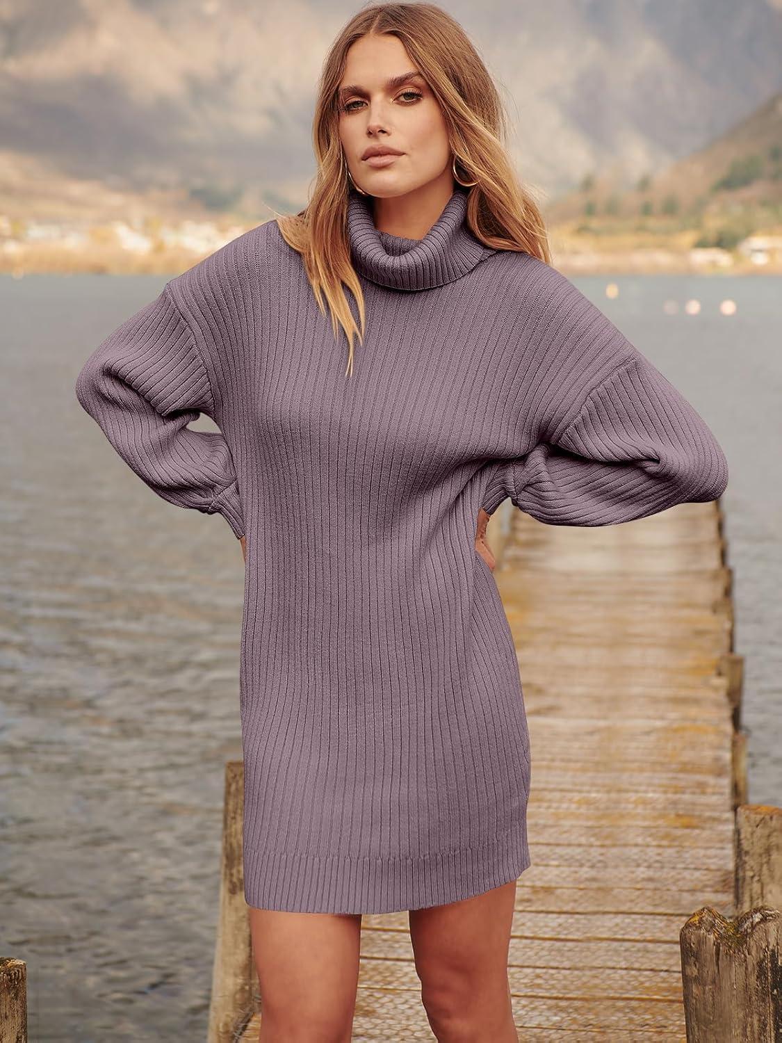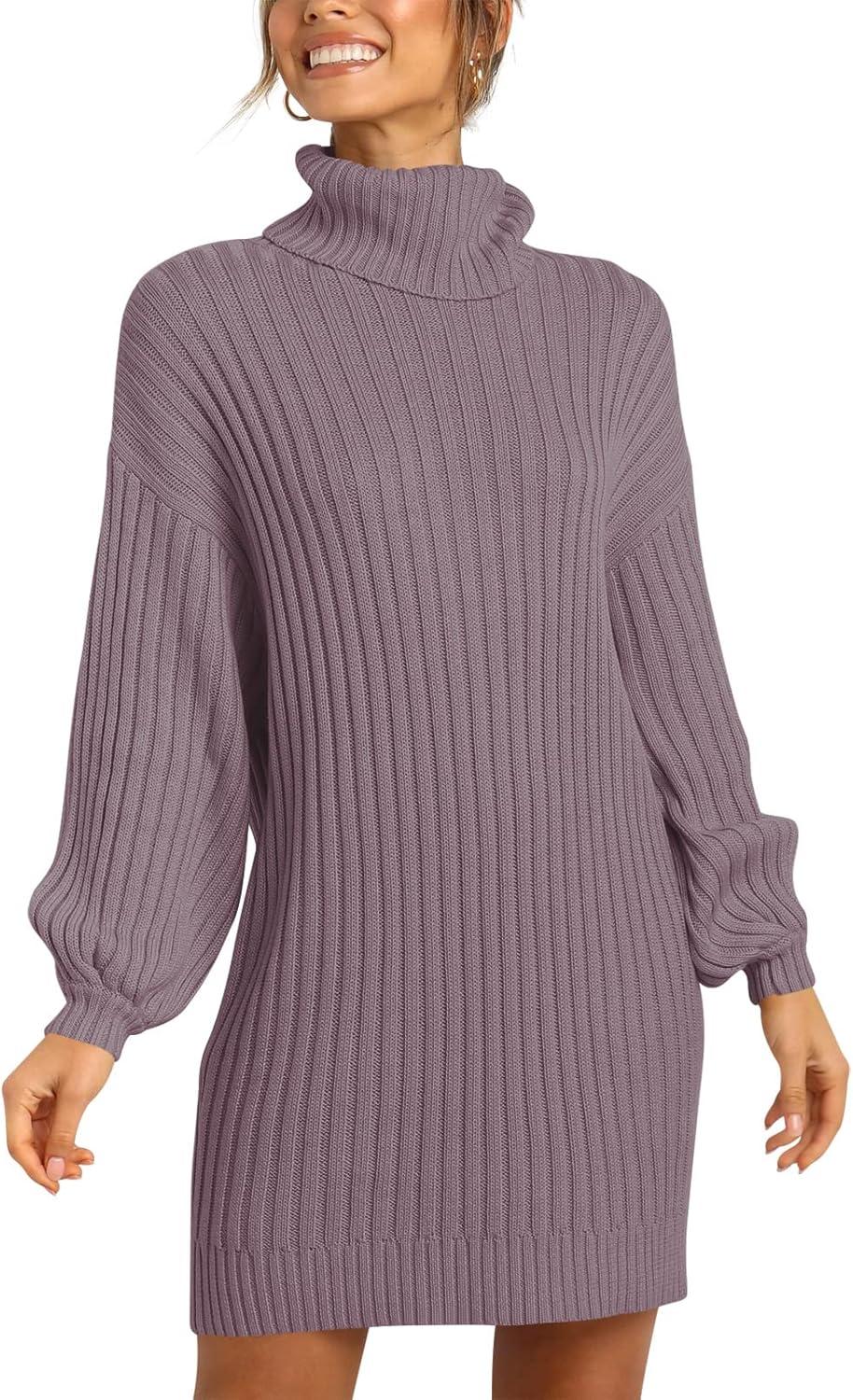 imageANRABESS Women Oversized Sweater Dress Turtleneck Batwing Long Sleeve Ribbed Knit Loose 2025 Fall Winter Casual Short DressPurple
