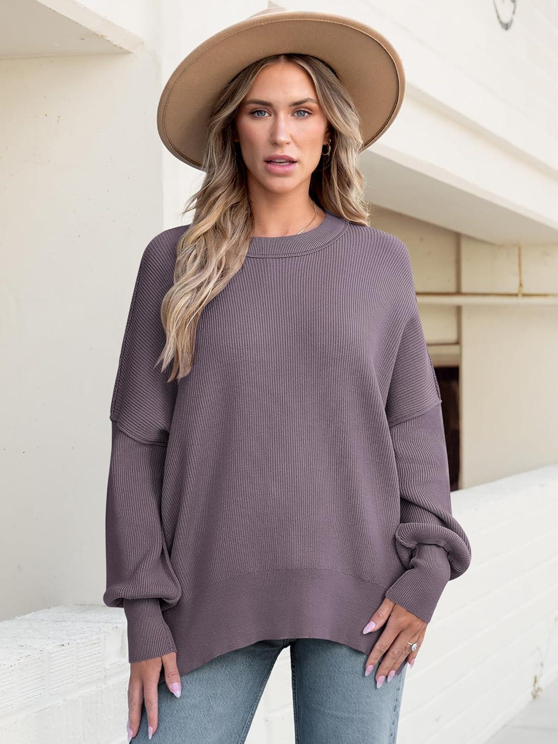 Be the first to review “ANRABESS Women Oversized Sweaters Batwing Long Sleeve 2025 Fall Outfits Crewneck Casual Knit Side Slit Fashion Pullover Top(Purple)”