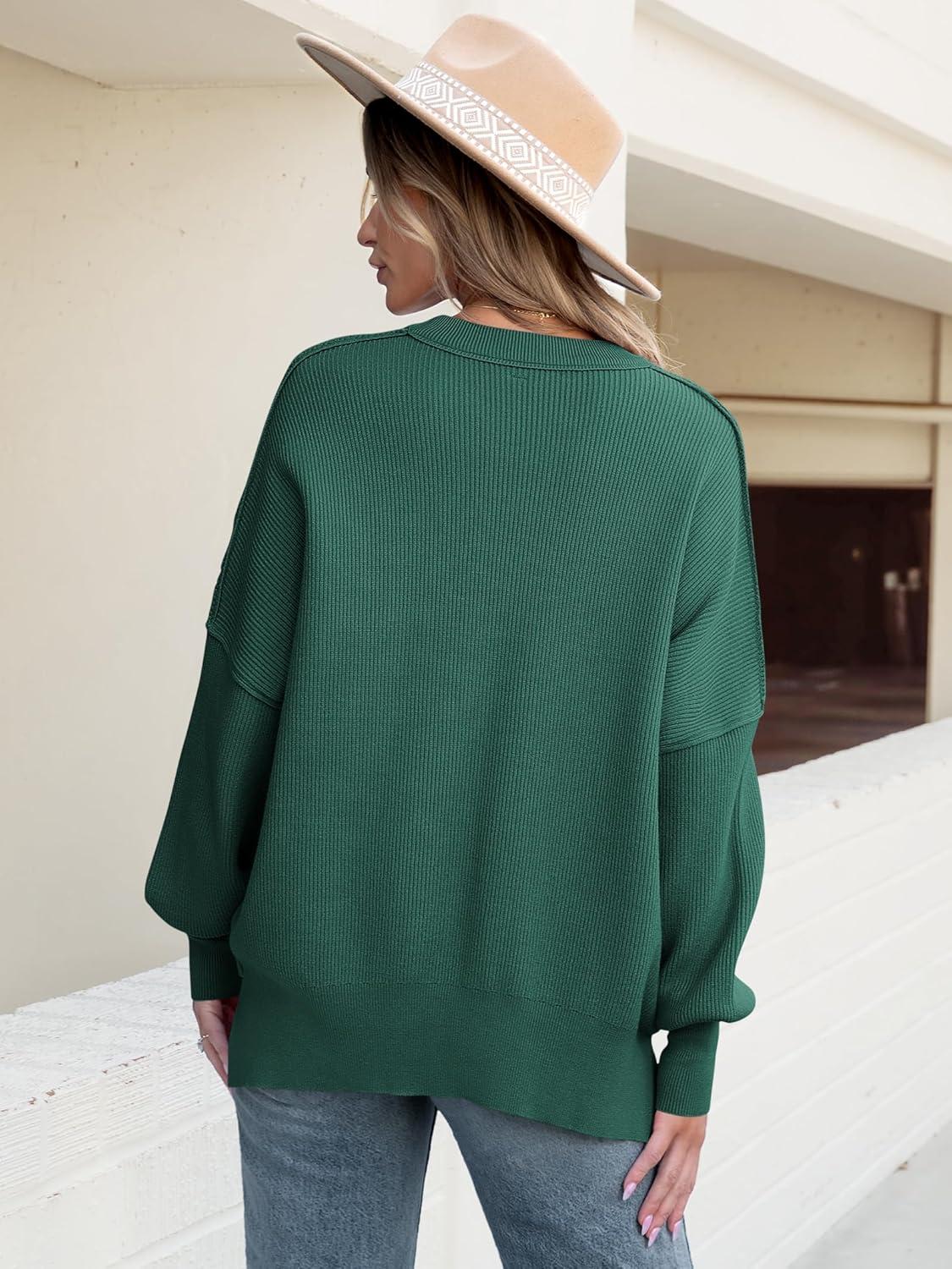 imageANRABESS Women Oversized Sweaters Batwing Long Sleeve 2026 Fall Outfits Crewneck Casual Knit Side Slit Fashion Pullover TopOpal Green