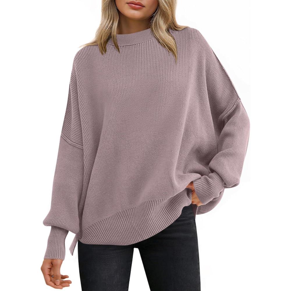 Be the first to review “ANRABESS Women Oversized Sweaters Batwing Long Sleeve 2026 Fall Outfits Crewneck Casual Knit Side Slit Fashion Pullover Top(Pink Apricot)”