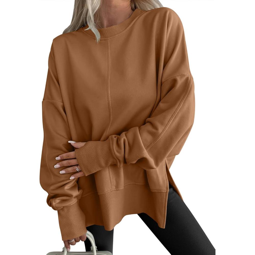 ANRABESS Women Oversized Sweatshirts Thumbhole Long Sleeve Hoodies Shirts 2025 Fall Side Slit Pullover Top Teen Y2k Outfits(Caramel)