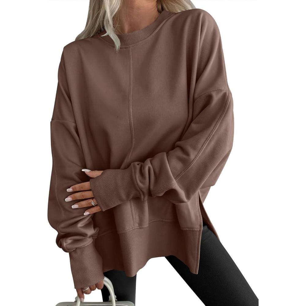 imageANRABESS Women Oversized Sweatshirts Thumbhole Long Sleeve Hoodies Shirts 2025 Fall Side Slit Pullover Top Teen Y2k OutfitsDeep Brown