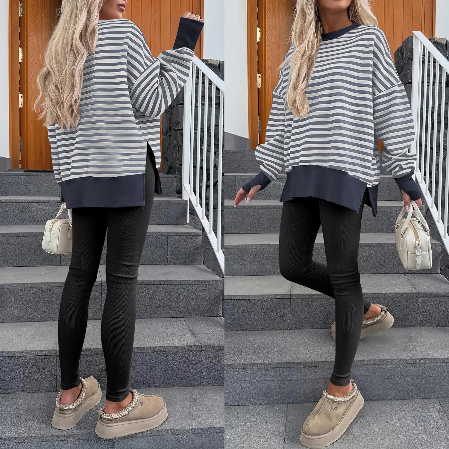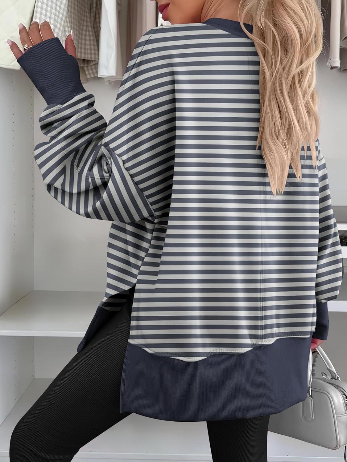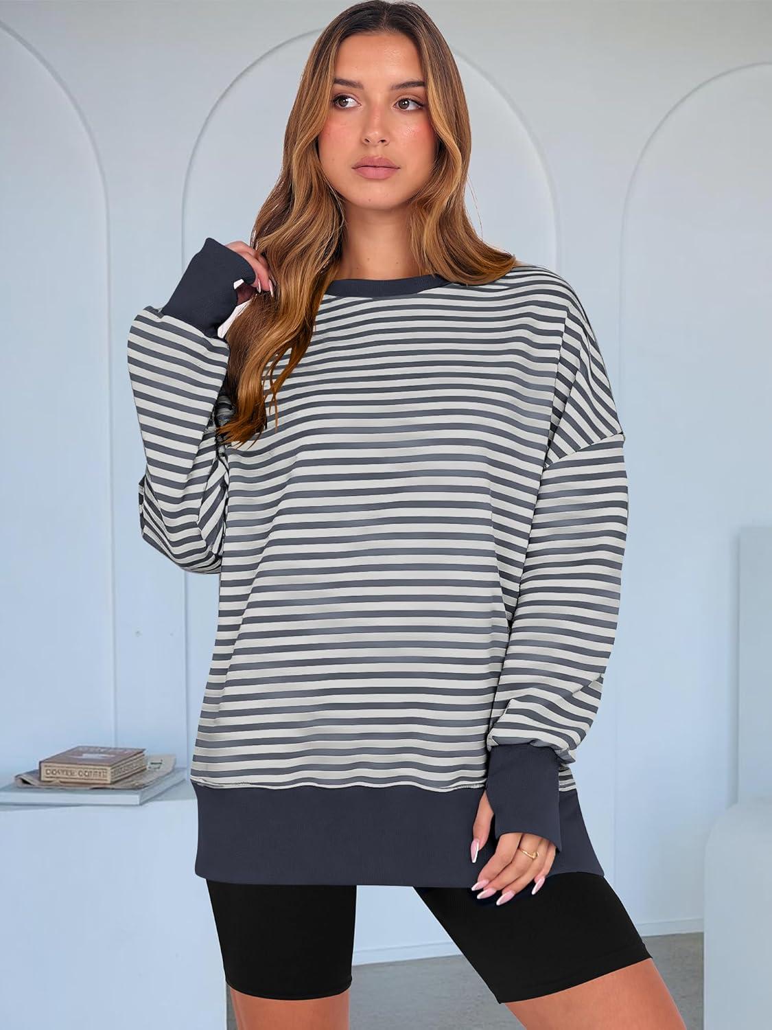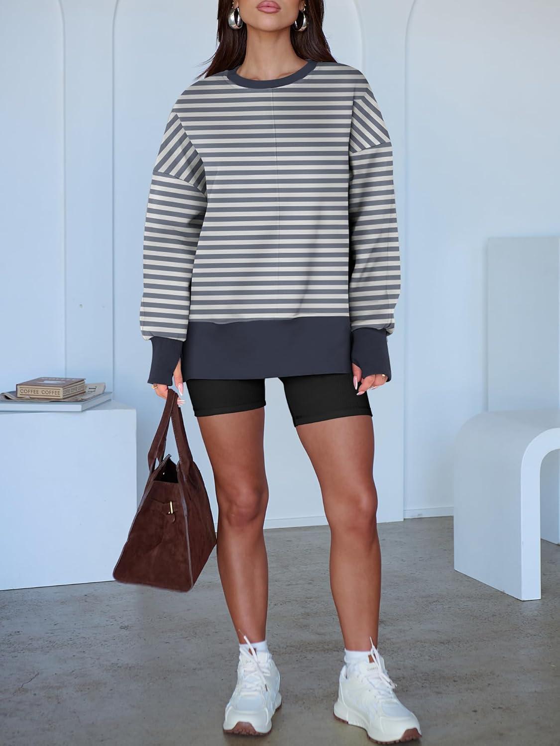 ANRABESS Women Oversized Sweatshirts Thumbhole Long Sleeve Hoodies Shirts 2025 Fall Side Slit Pullover Top Teen Y2k Outfits(Grey Bule Striped)