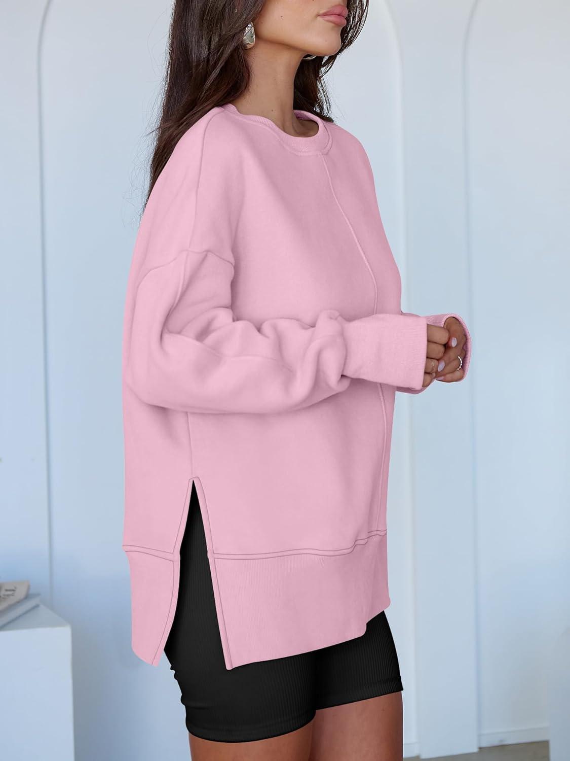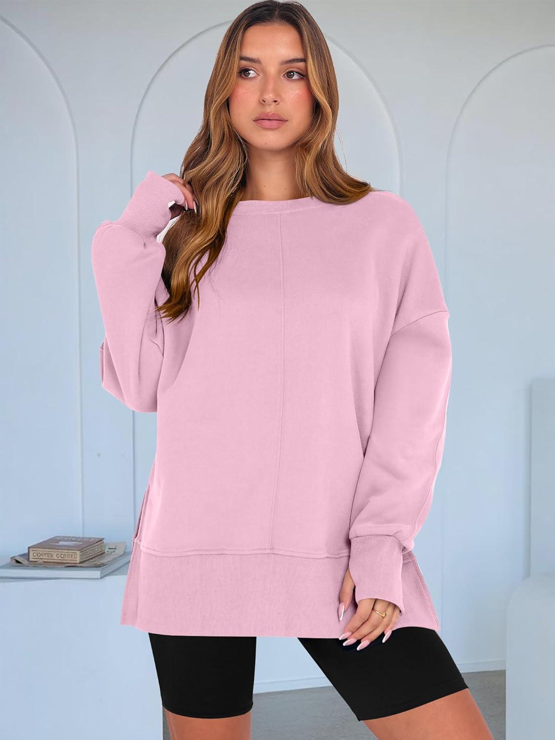 ANRABESS Women Oversized Sweatshirts Thumbhole Long Sleeve Hoodies Shirts 2025 Fall Side Slit Pullover Top Teen Y2k Outfits(Pink)