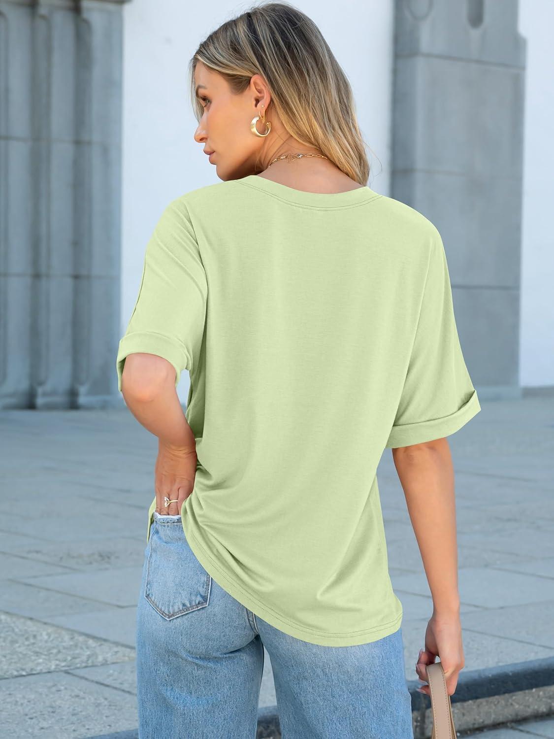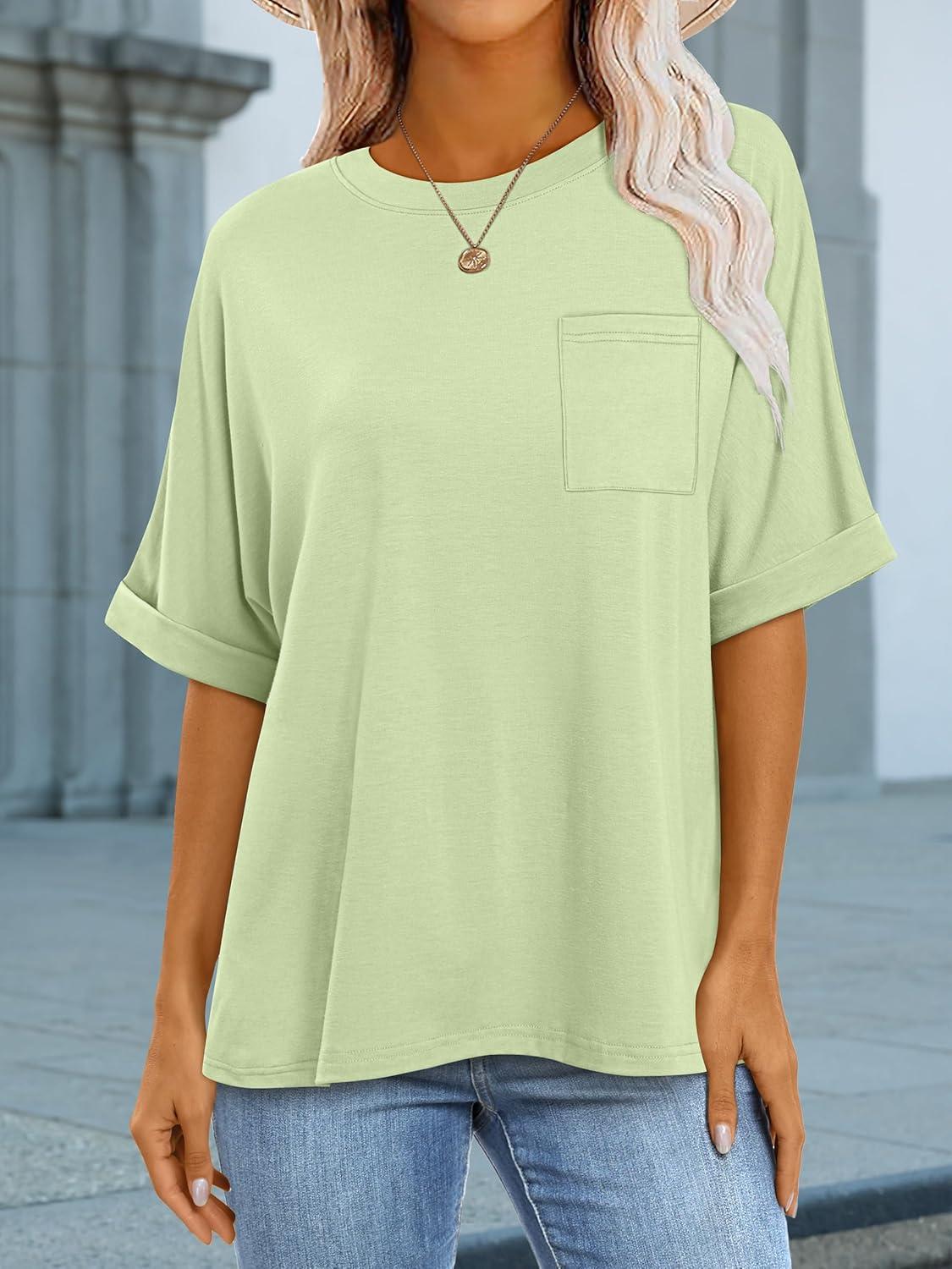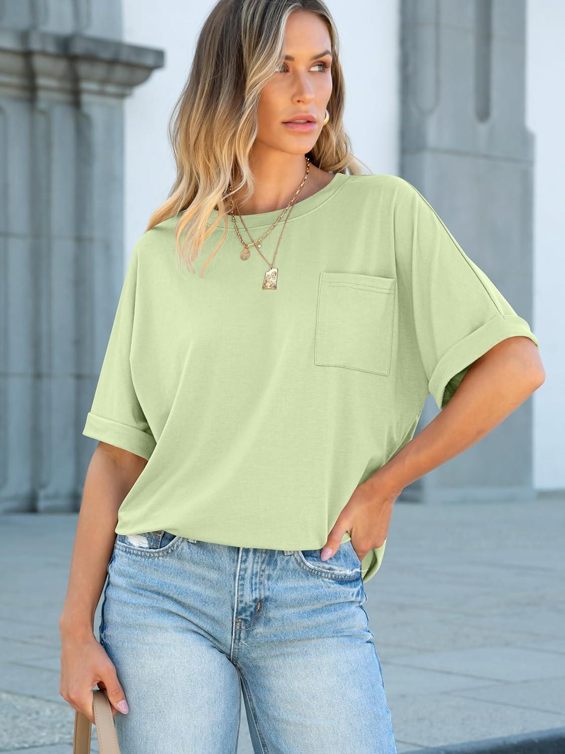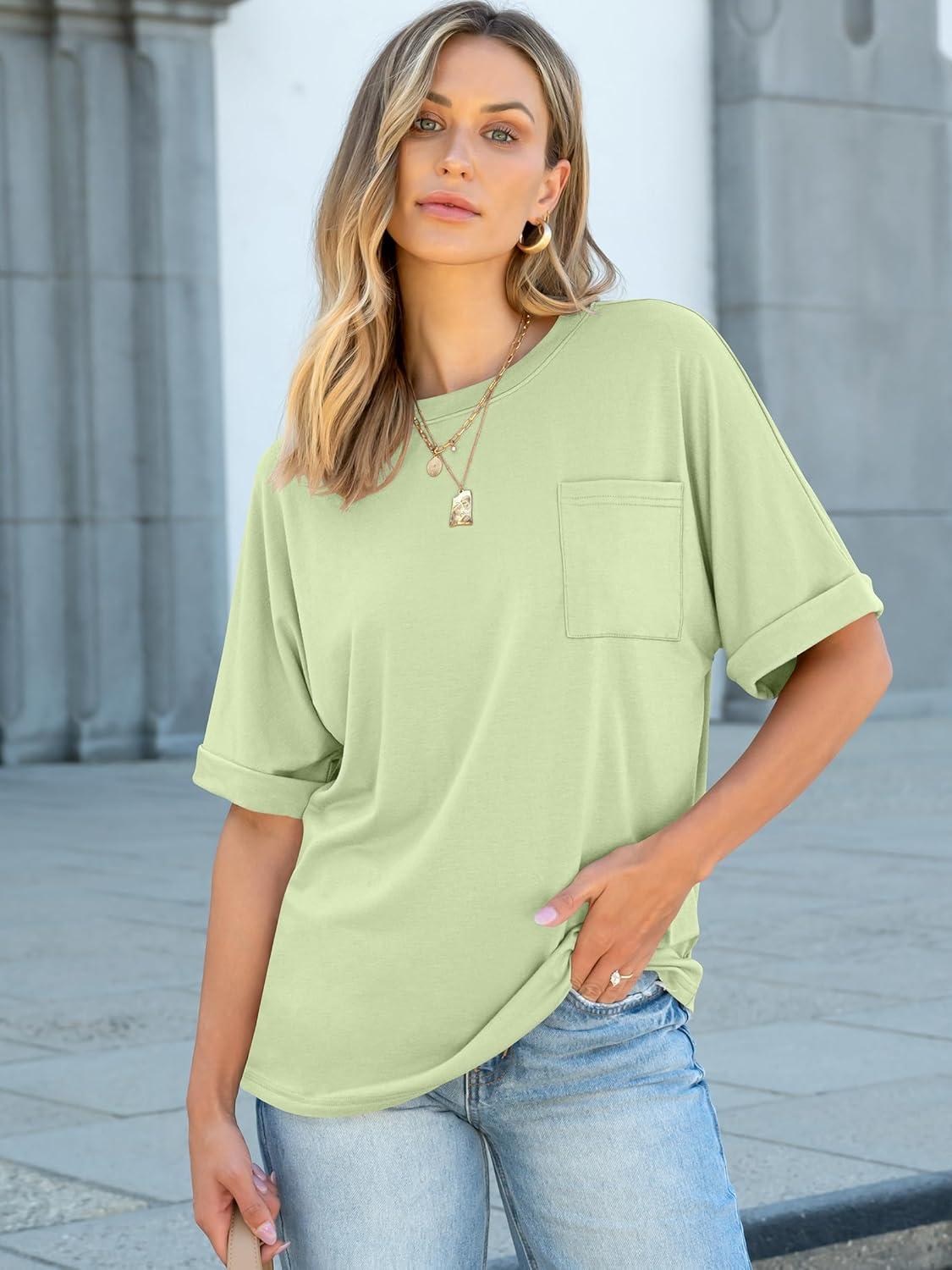 ANRABESS Women Oversized T Shirts Short Sleeve Summer Casual Loose Top Basic Tee with Pocket(Light Green)