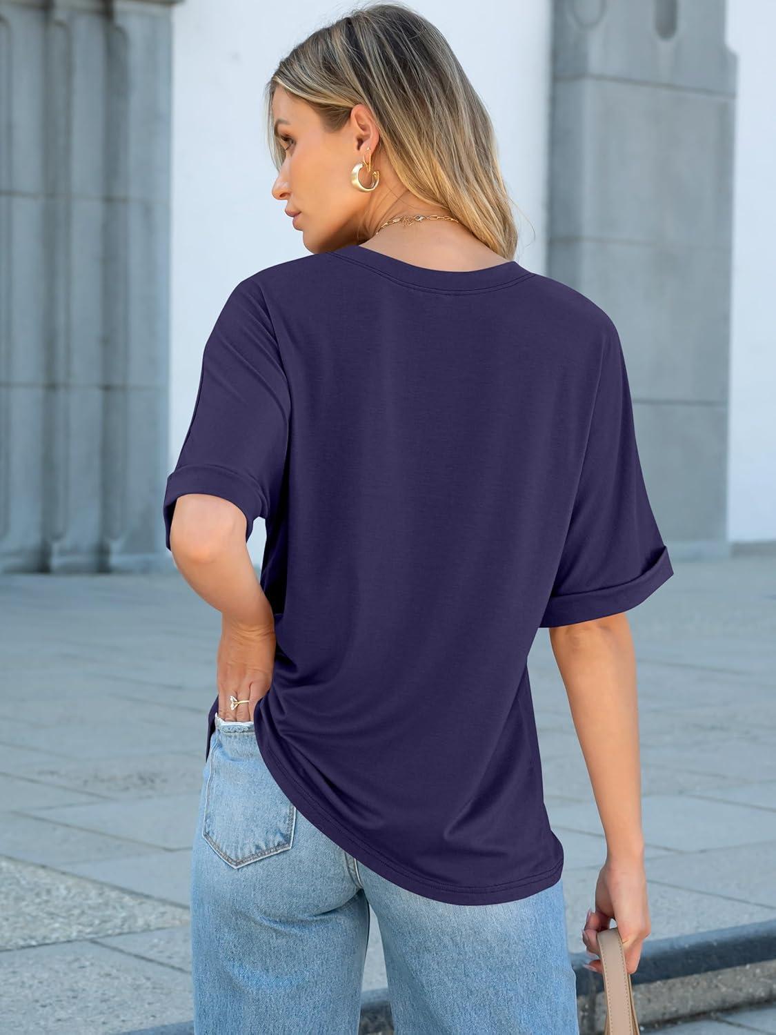 imageANRABESS Women Oversized T Shirts Short Sleeve Summer Casual Loose Top Basic Tee with PocketLight Purple