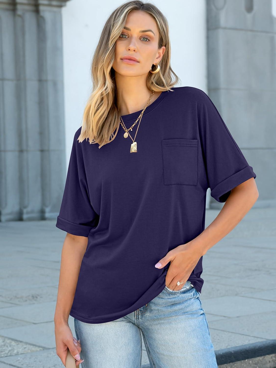 imageANRABESS Women Oversized T Shirts Short Sleeve Summer Casual Loose Top Basic Tee with PocketNavy Blue