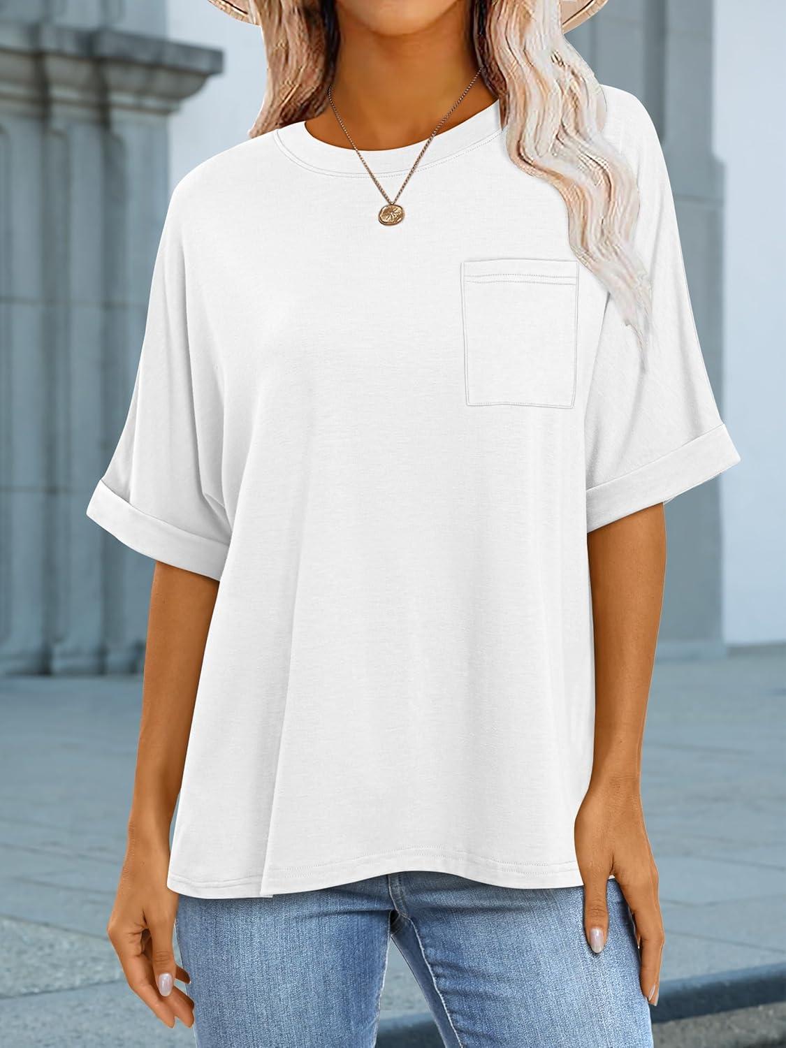 ANRABESS Women Oversized T Shirts Short Sleeve Summer Casual Loose Top Basic Tee with Pocket(White)