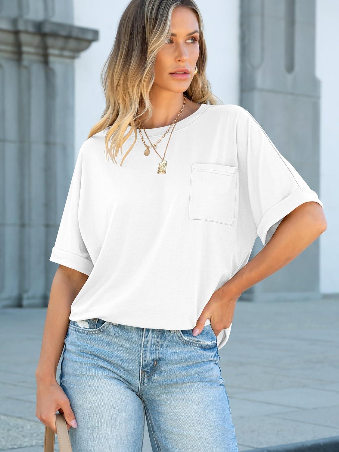 imageANRABESS Women Oversized T Shirts Short Sleeve Summer Casual Loose Top Basic Tee with PocketWhite