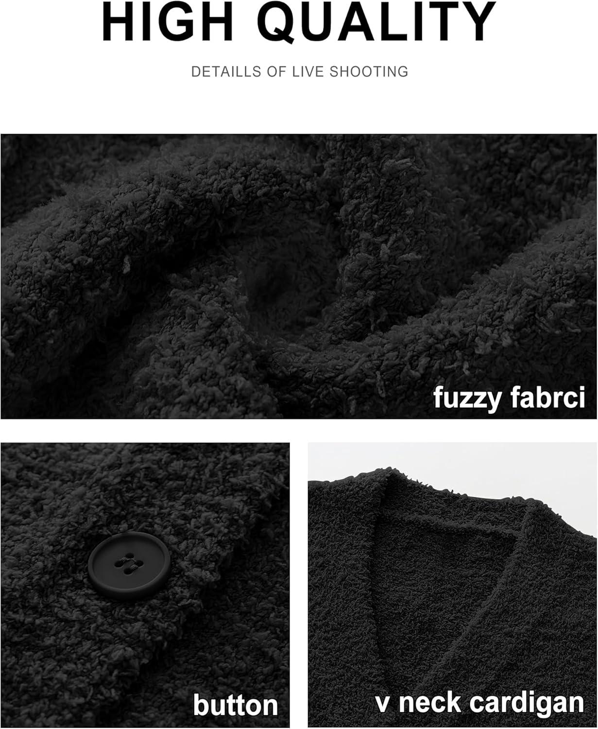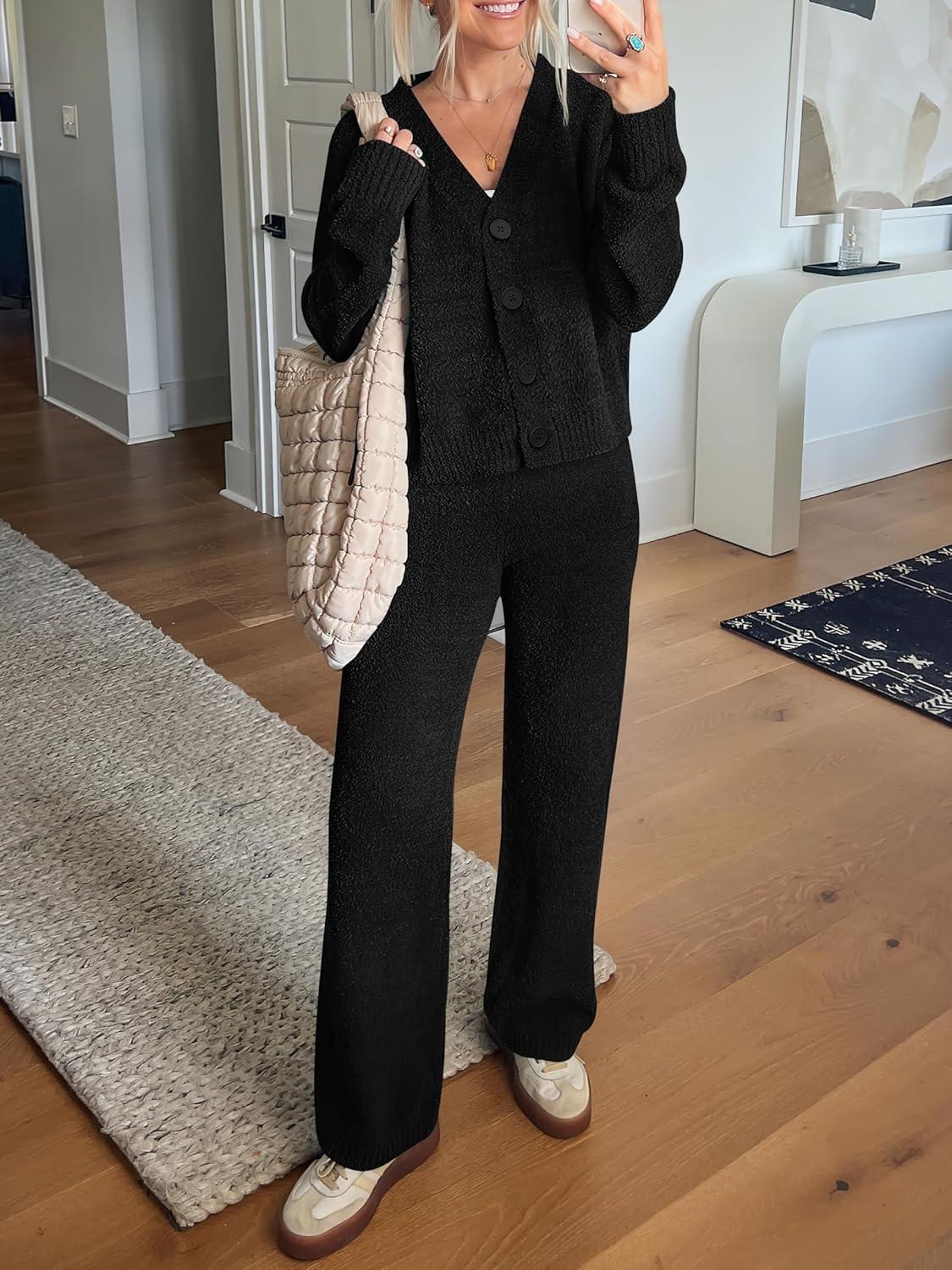 ANRABESS Women Pajama Lounge Sets Fuzzy Fleece 2 Piece Outfits Long Sleeve Cardigan Wide Leg Pants 2025 Fall Comfy Loungewear(Black)