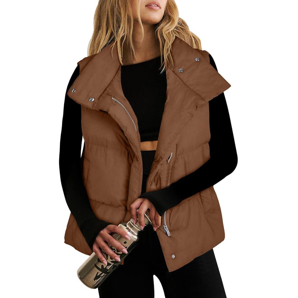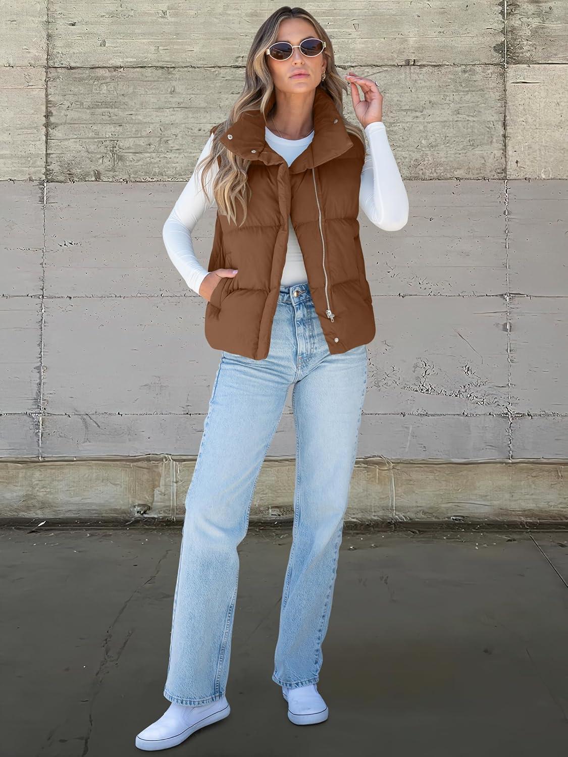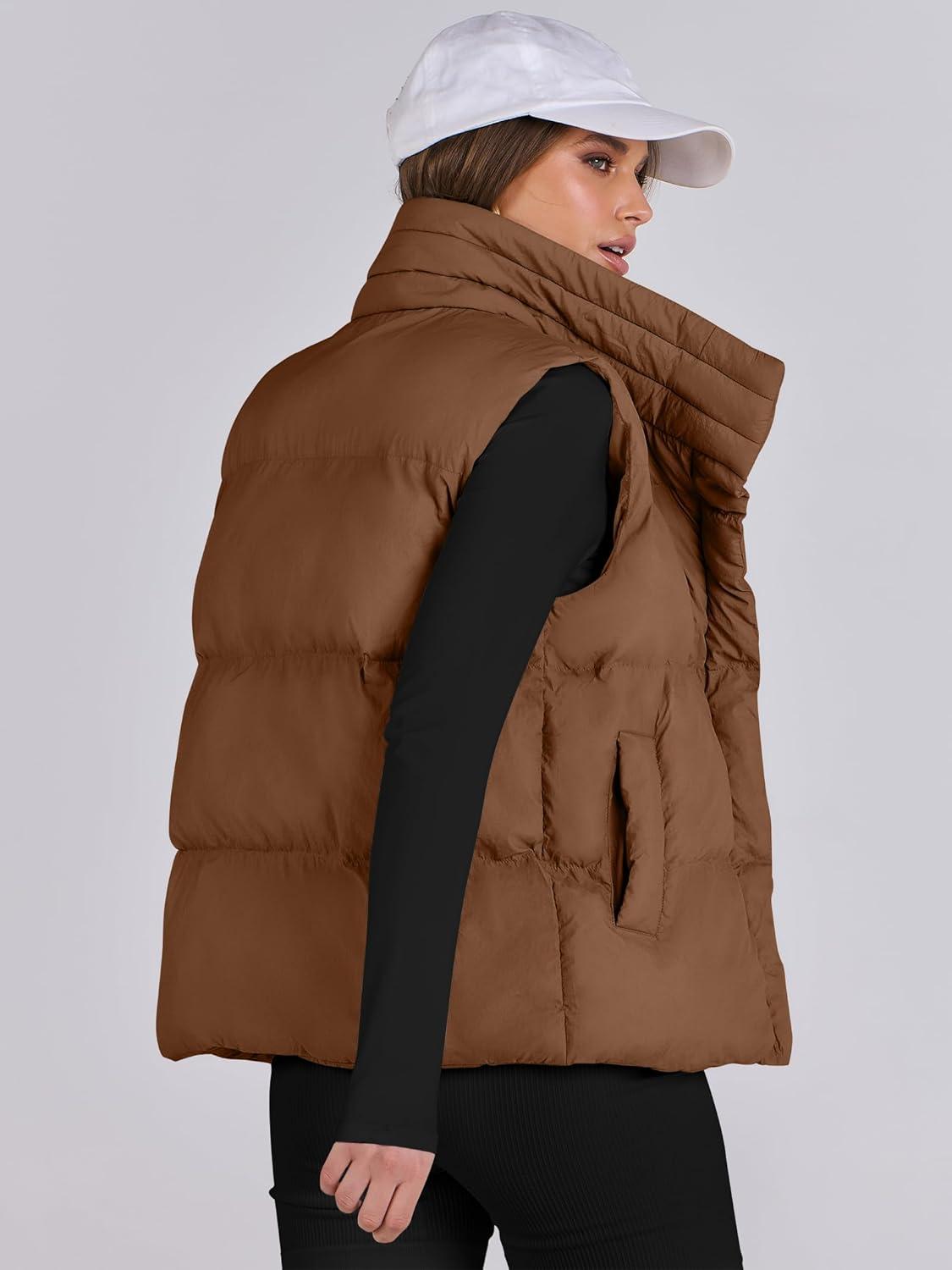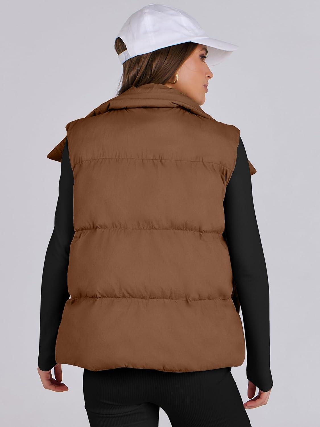 ANRABESS Women Puffer Vest Sleeveless Zip Up Stand Collar Quilted Lightweight Jacket Winter Warm Puffer Padded Down Outerwear(Brown)