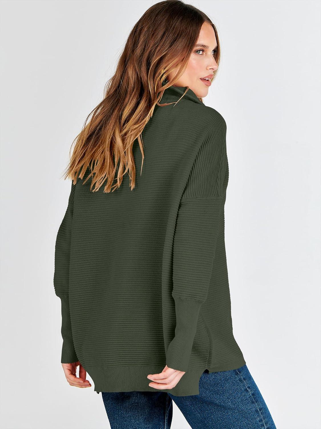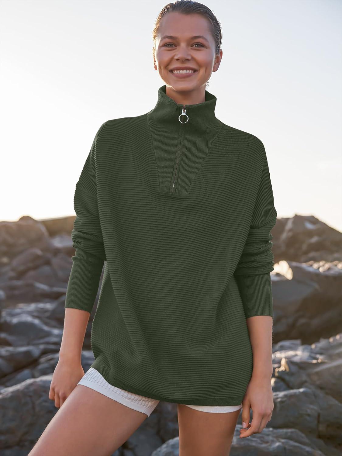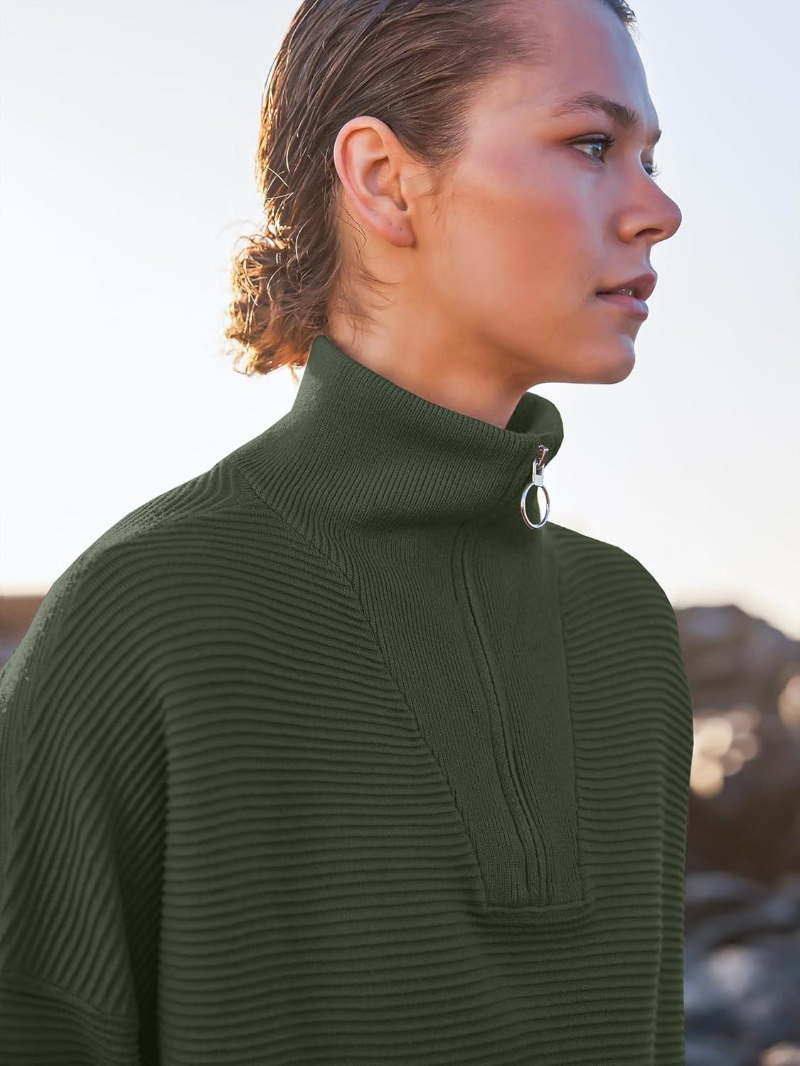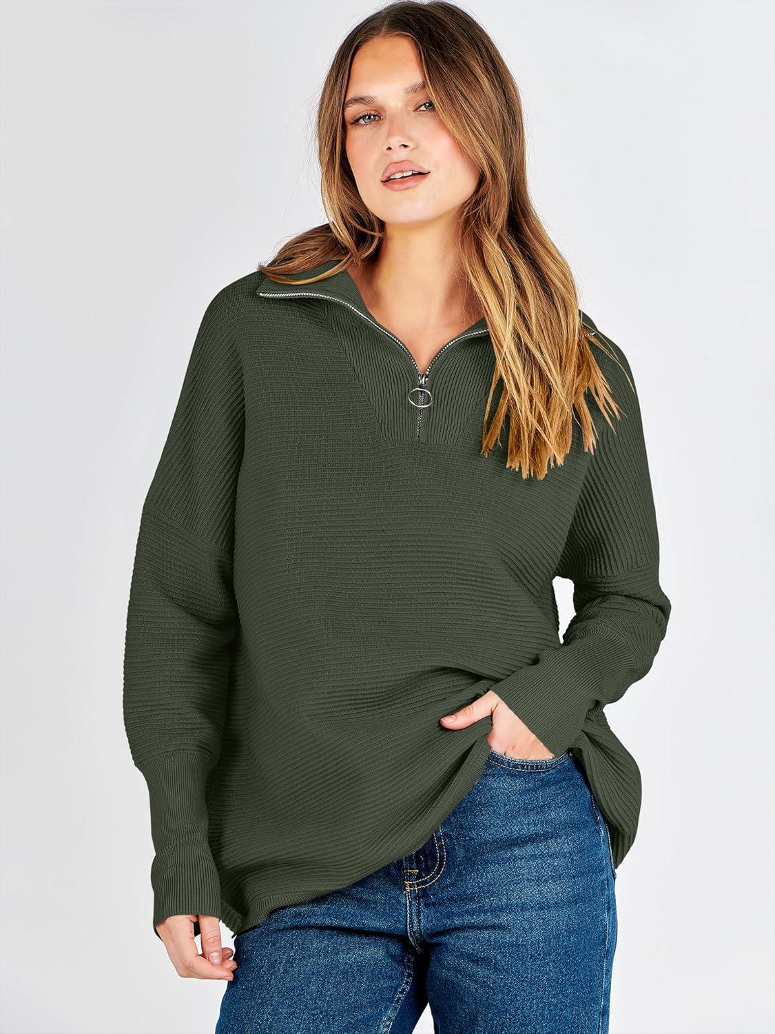 imageANRABESS Women Quarter Zip Oversized Casual Loose Rib Knit Cozy Pullover Sweaters Top 2025 Fall Fashion Outfits ClothesArmy Green