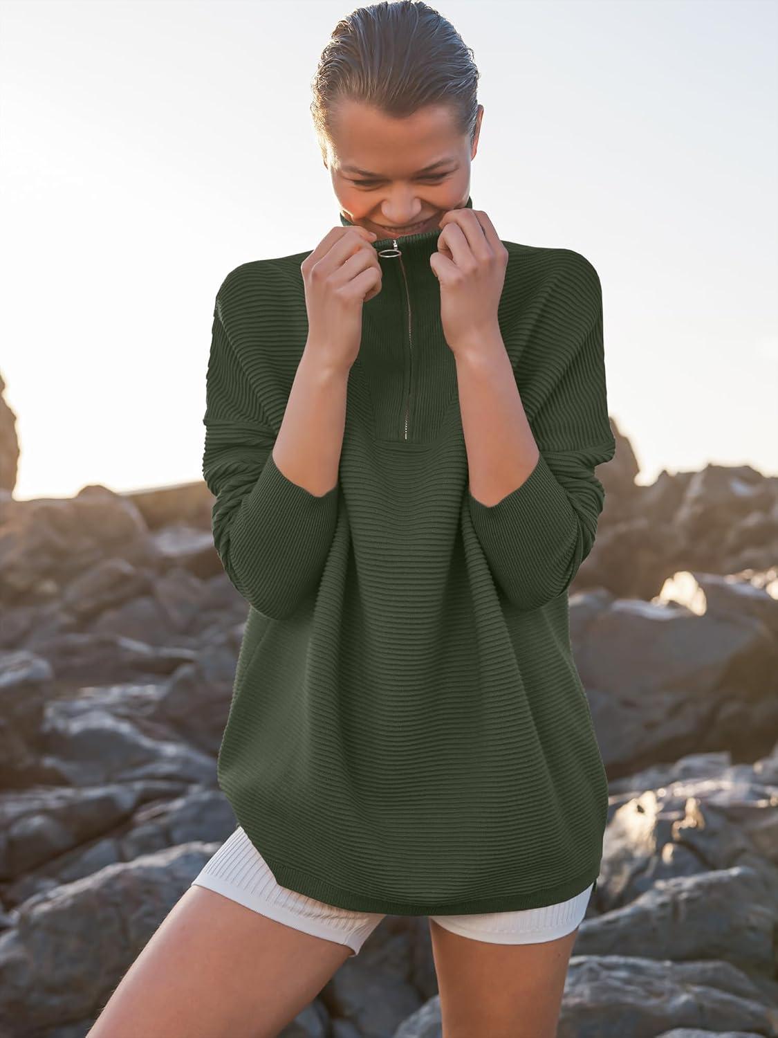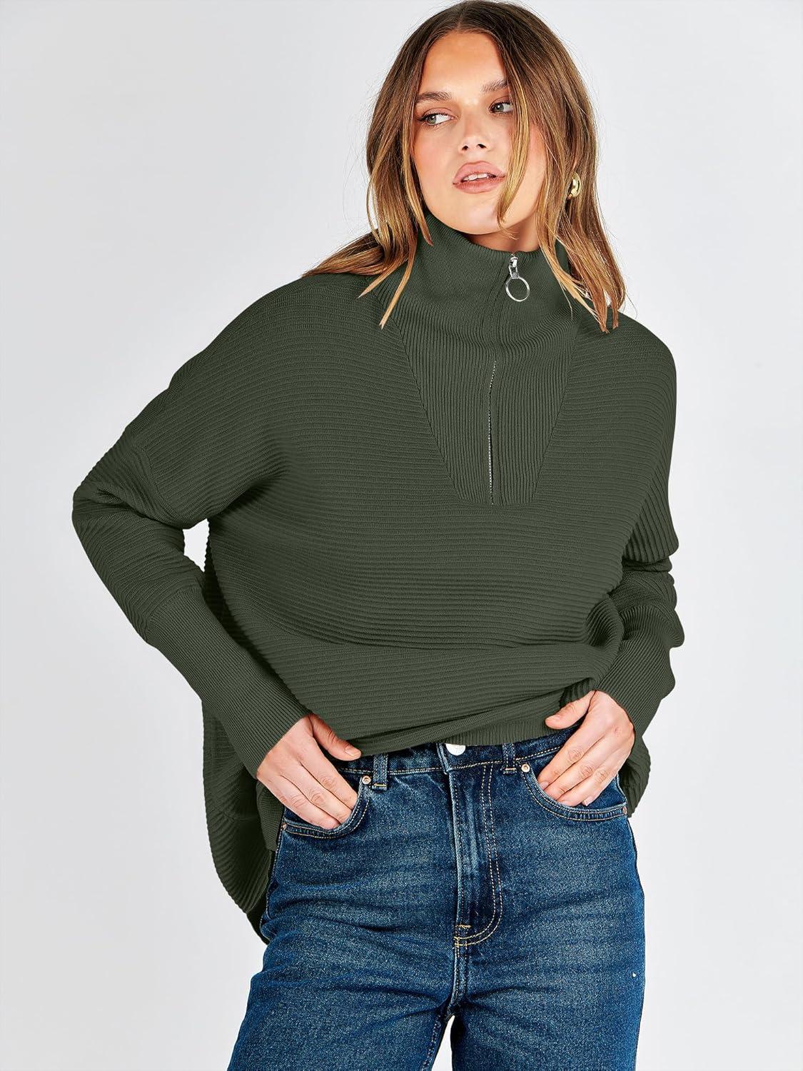 ANRABESS Women Quarter Zip Oversized Casual Loose Rib Knit Cozy Pullover Sweaters Top 2025 Fall Fashion Outfits Clothes(Army Green)