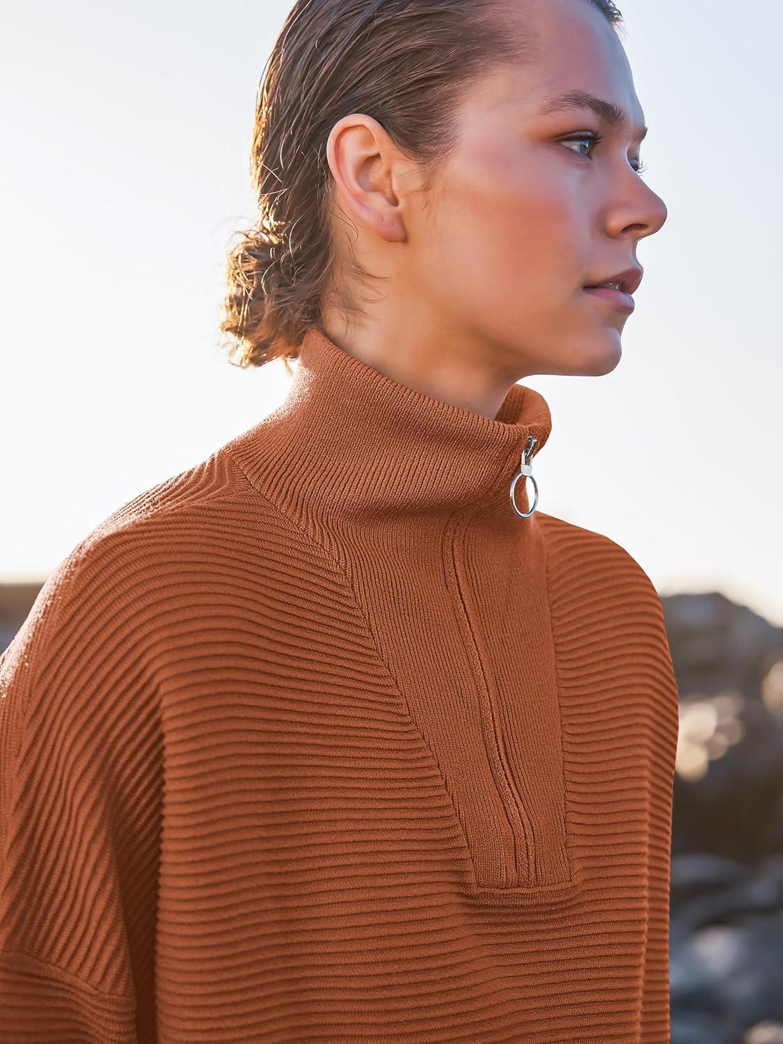 ANRABESS Women Quarter Zip Oversized Casual Loose Rib Knit Cozy Pullover Sweaters Top 2025 Fall Fashion Outfits Clothes(Brick – Orange Rust)