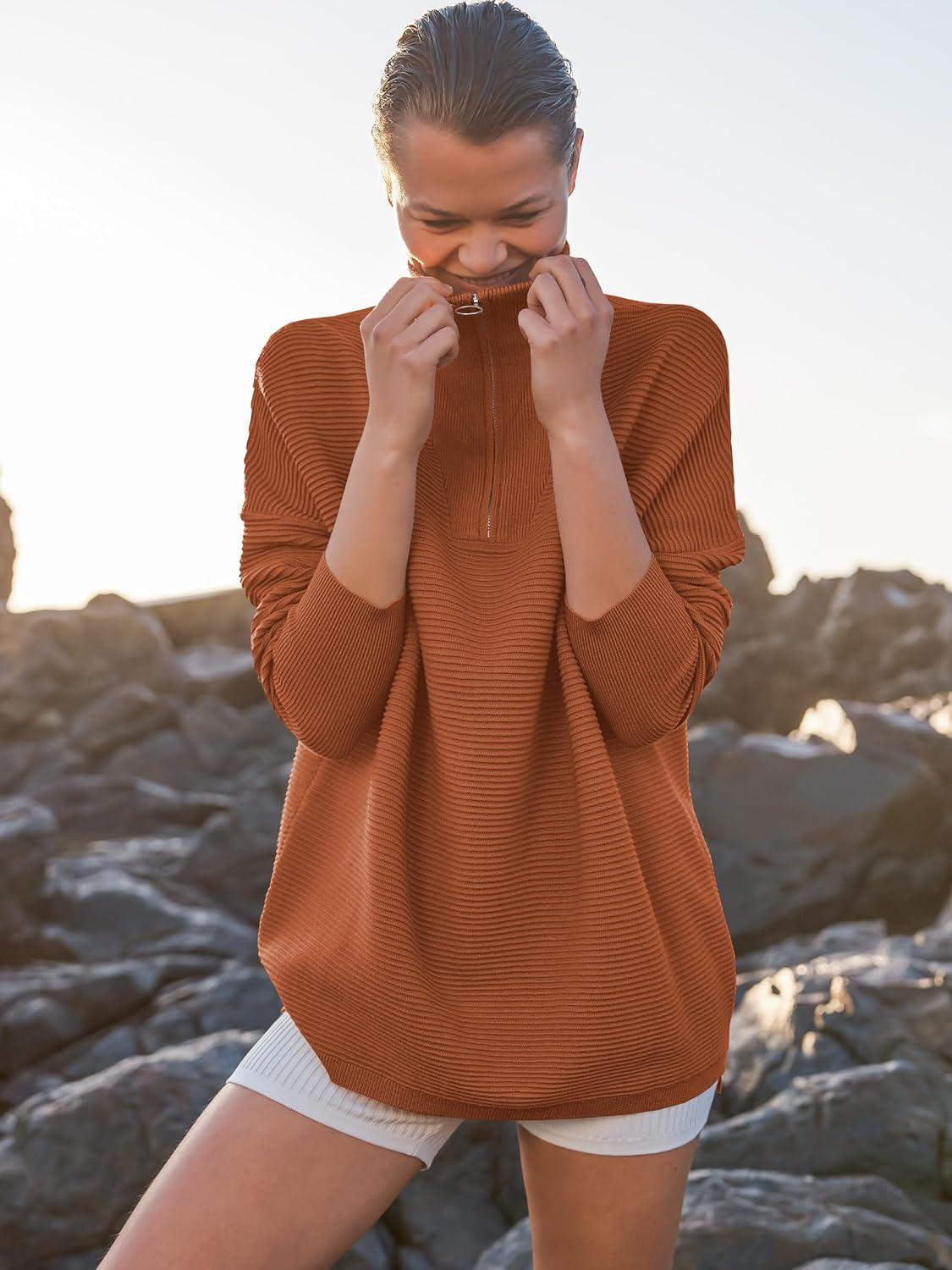 imageANRABESS Women Quarter Zip Oversized Casual Loose Rib Knit Cozy Pullover Sweaters Top 2025 Fall Fashion Outfits ClothesBrick  Orange Rust