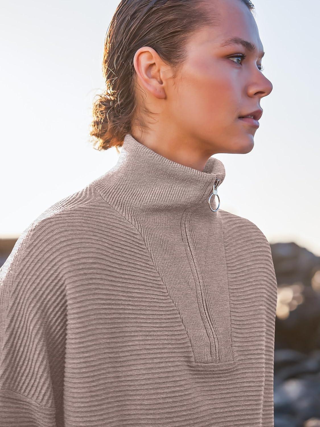 imageANRABESS Women Quarter Zip Oversized Casual Loose Rib Knit Cozy Pullover Sweaters Top 2025 Fall Fashion Outfits ClothesCamel