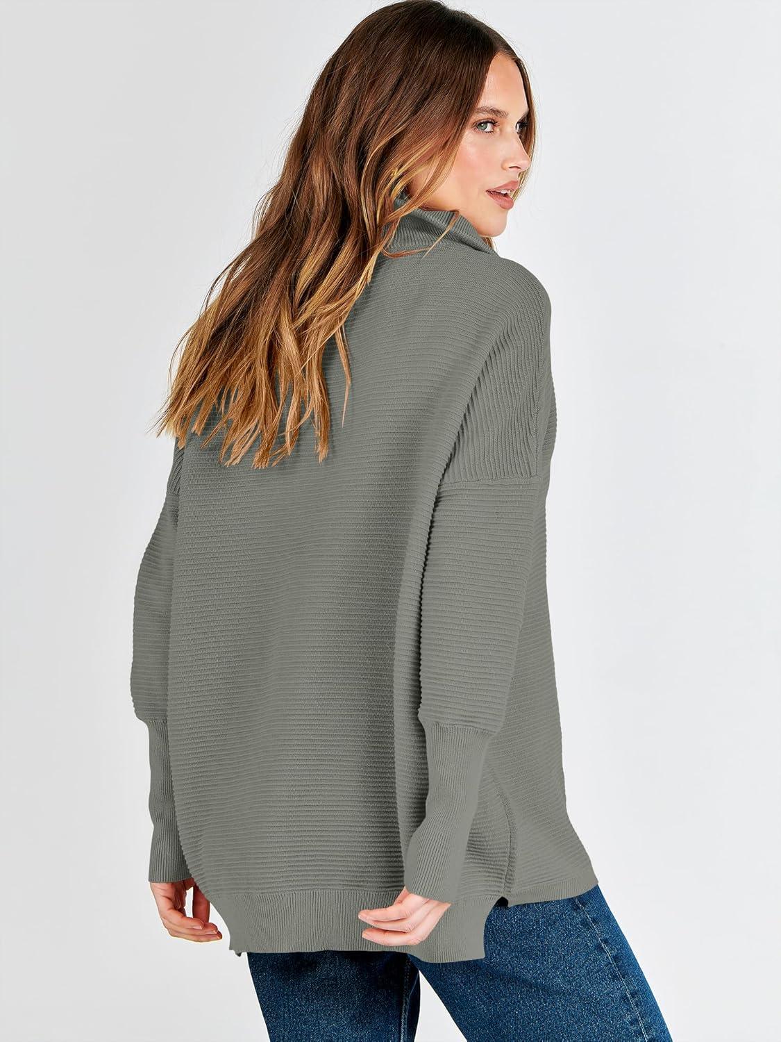ANRABESS Women Quarter Zip Oversized Casual Loose Rib Knit Cozy Pullover Sweaters Top 2025 Fall Fashion Outfits Clothes(Gray)