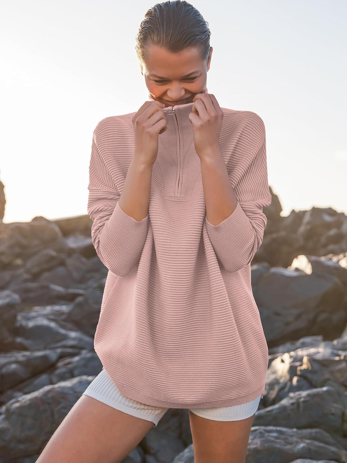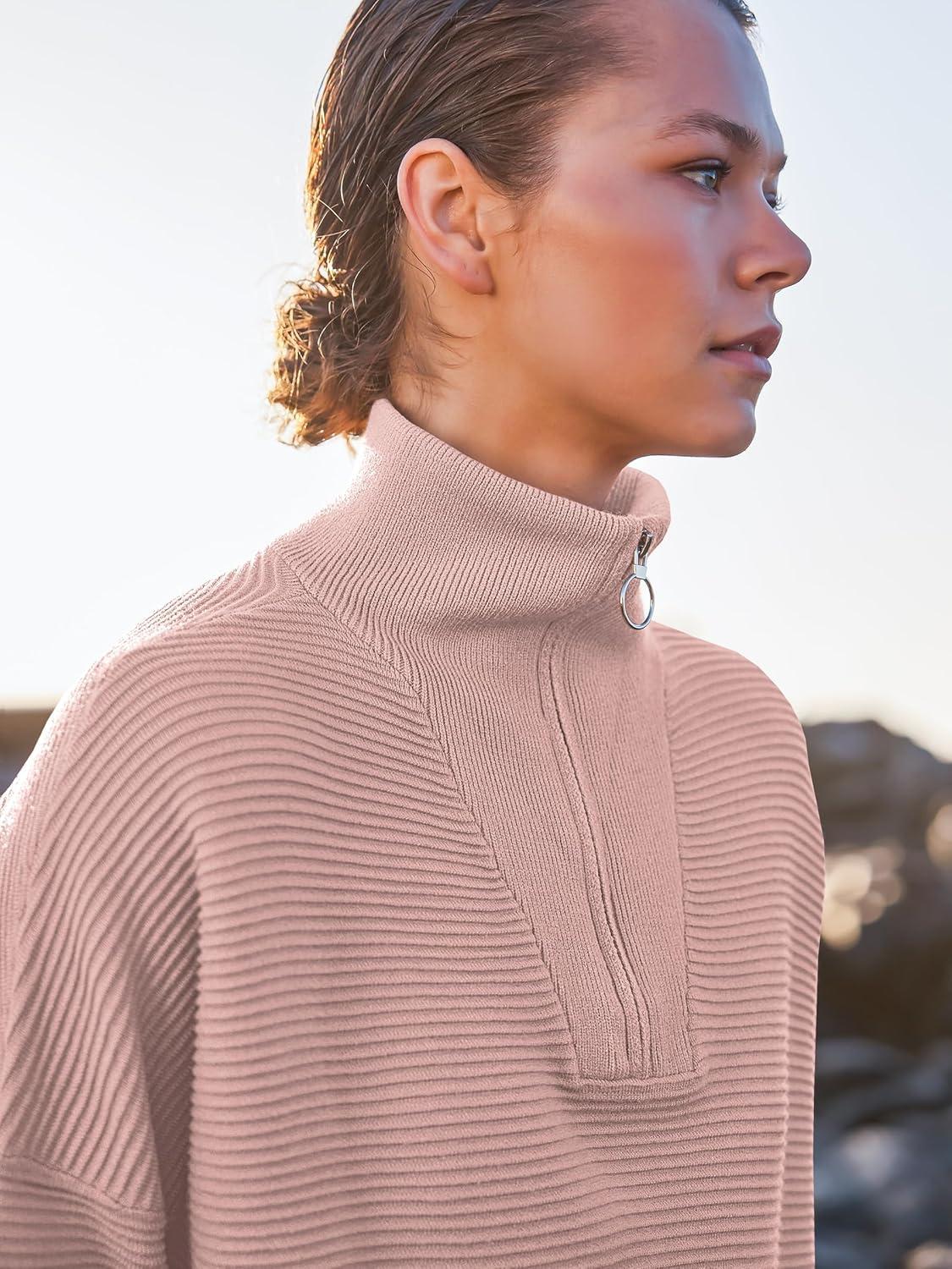 imageANRABESS Women Quarter Zip Oversized Casual Loose Rib Knit Cozy Pullover Sweaters Top 2025 Fall Fashion Outfits ClothesPink